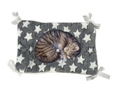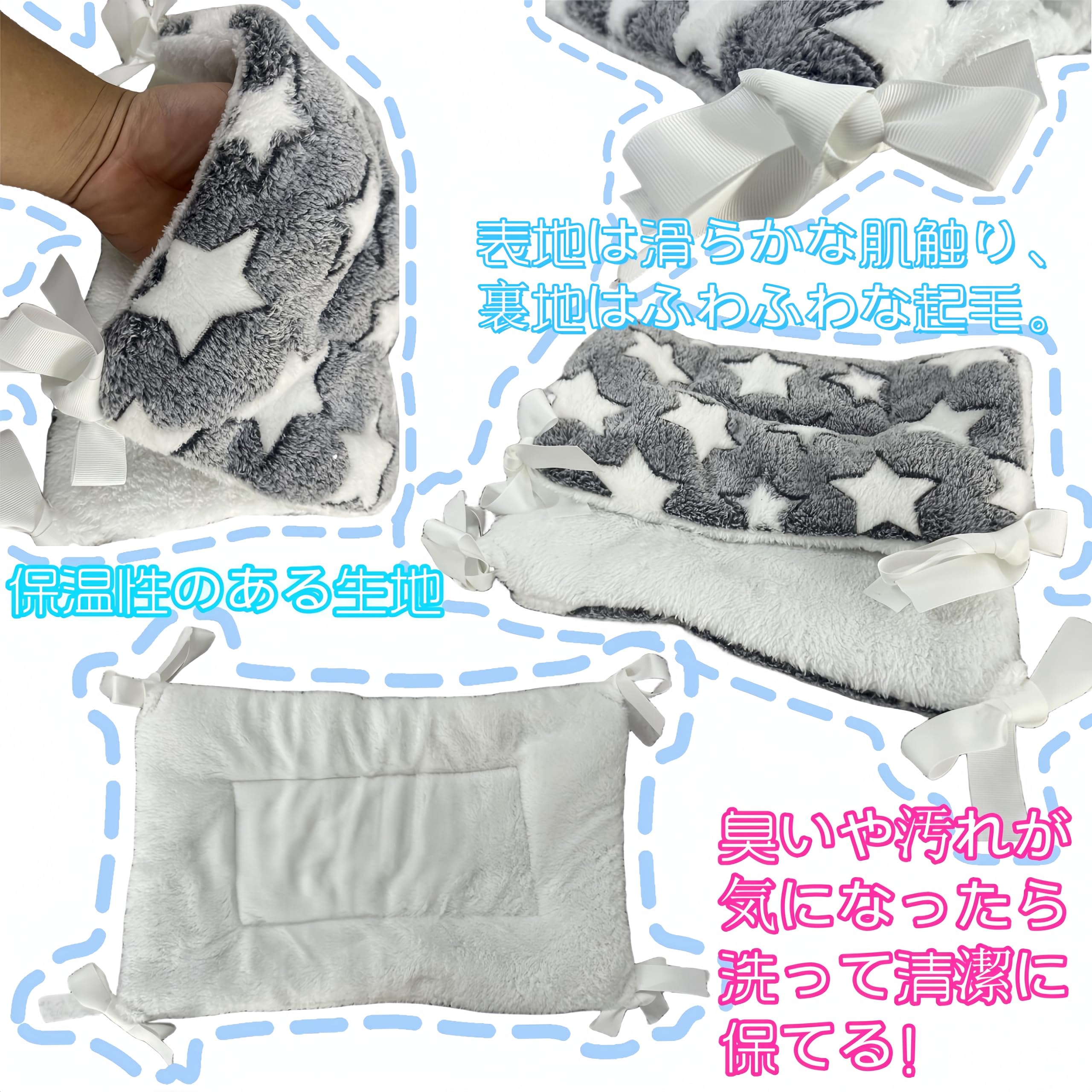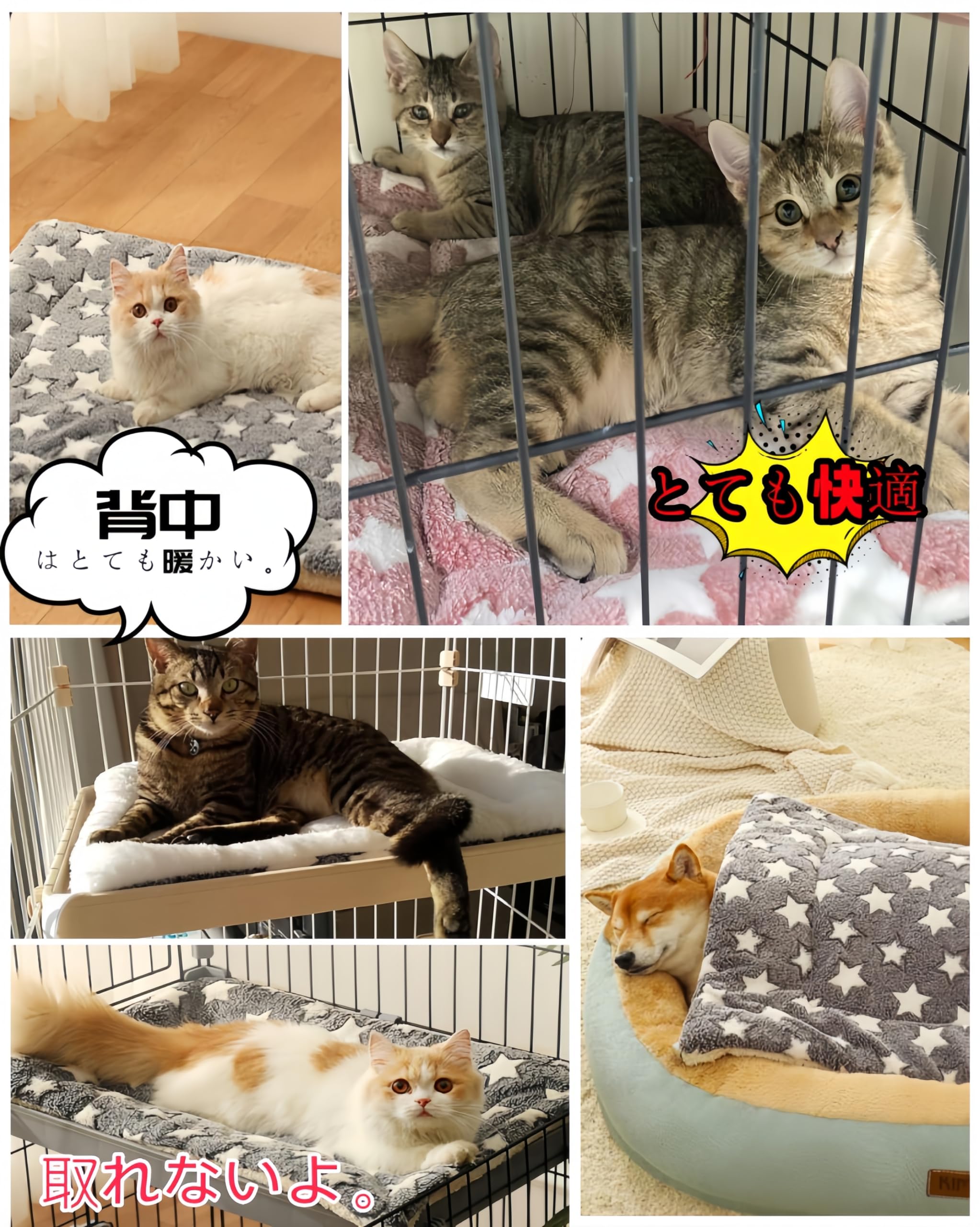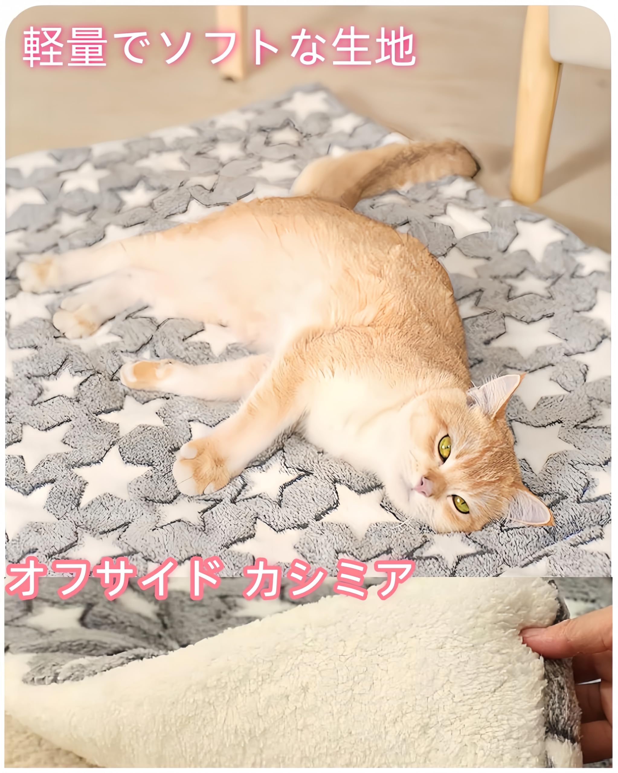 【両面使いやすいデザイン、四季の愛】クッションは両面使え、取り外しやすく、清潔で爽やかな状態を保ちます。クッションの表面には星の模様があり、裏面は真っ白で、冬は暖かくふんわり、夏は簡単に裏返して滑らかで快適な感触を楽しめます。ペットにとって一年中快適な睡眠環境を提供し、常にペットの健康を考えます。