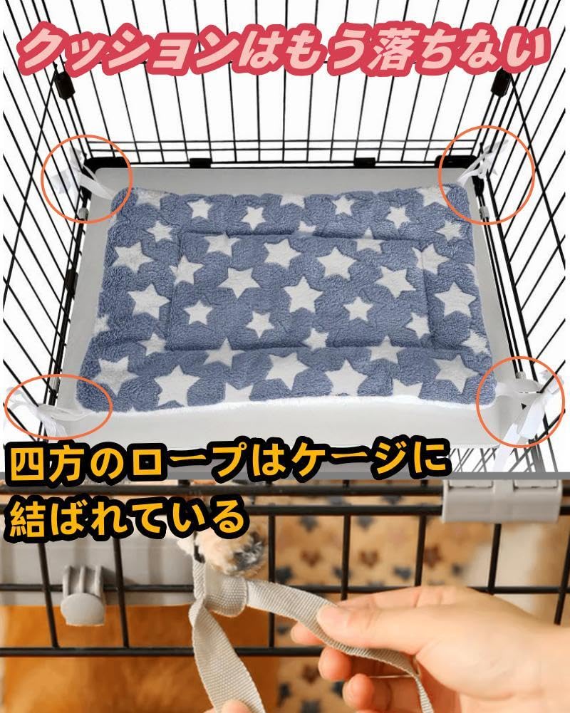 【固定安定、ネコ用クッションがもうズレなし】ペットのクッションがいつもズレてイライラしていませんか? 四隅に取り付ける革新的なデザインで、ケージや椅子にしっかりと固定し、ペットが思う存分遊べるようになり、クッションが落ちる心配がありません。独特の紐のデザインは、ネコが登るのが好きな仲間たちに安心感を提供します。
