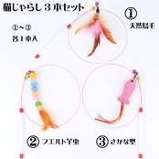 猫じゃらし 3本セット 猫 おもちゃ ワイヤー 丈夫 頑丈 鳥毛 羽 羽根 プレゼント ギフト