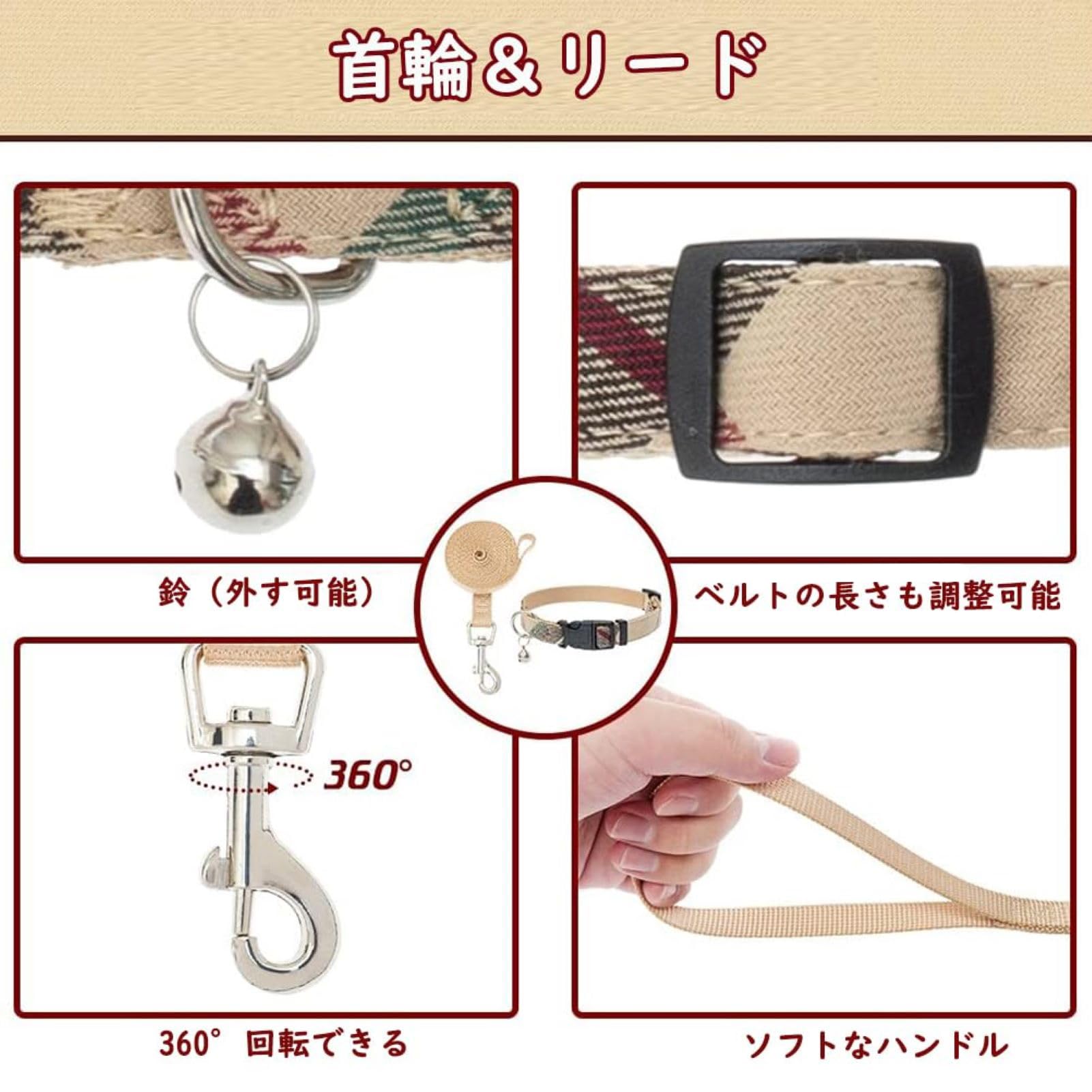 【数量限】BINGPET 犬 ハーネス 首輪 リードセット 胴輪 小型犬 犬用ハーネス チェックデザイン ハンドル付き メッシュ素材 身体に優しい ベスト 反射材付き 調節可能 お散歩 着脱簡単 引っ張り防止 人気 おしゃれ 可愛い (ベージュ S) | GIGATERA