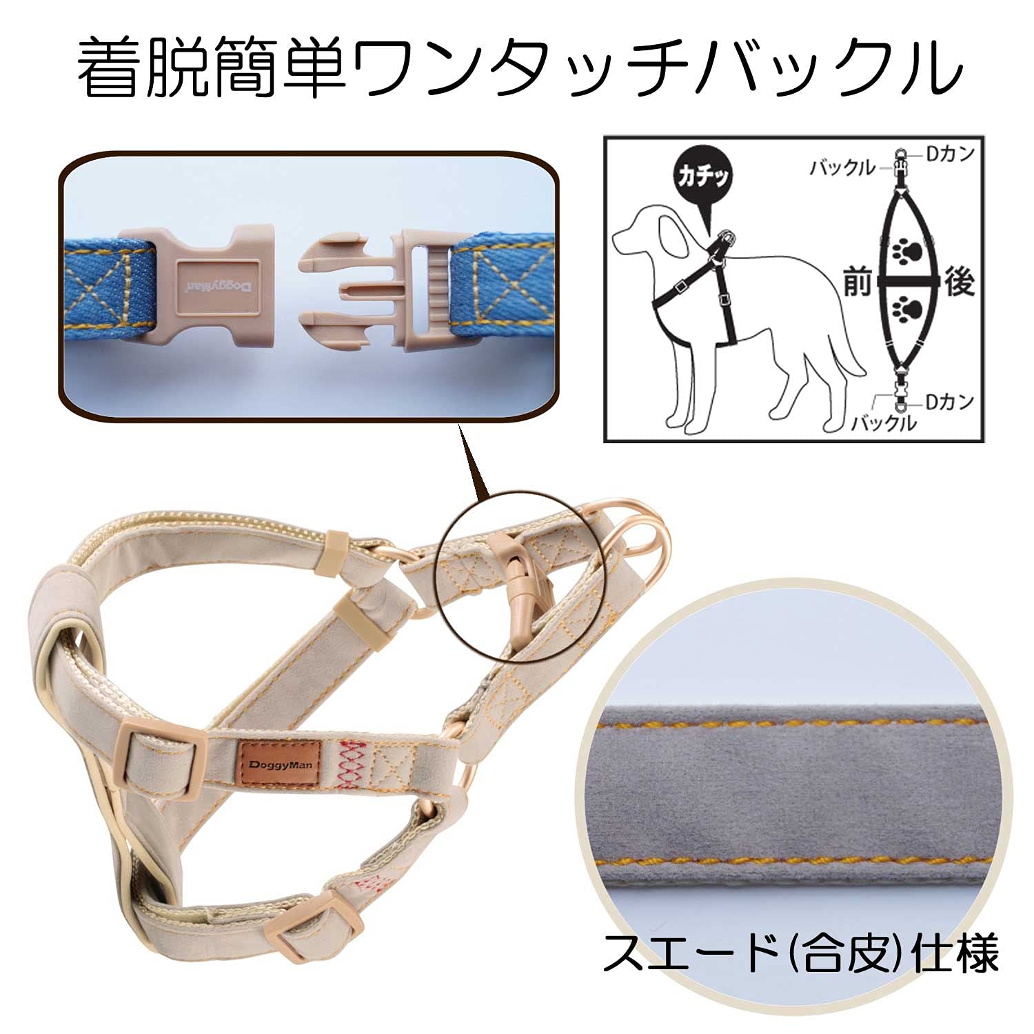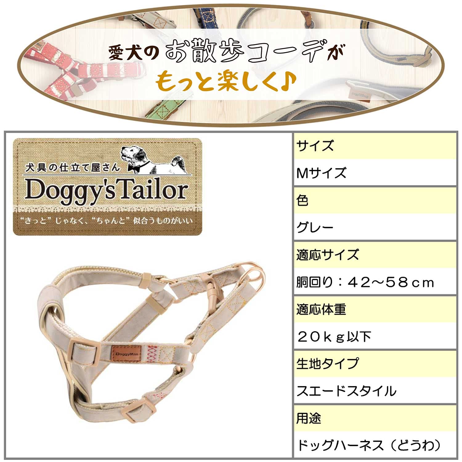 ドギーマン Doggy's Tailor ドッグハーネス(どうわ) M スエードスタイル グレー
