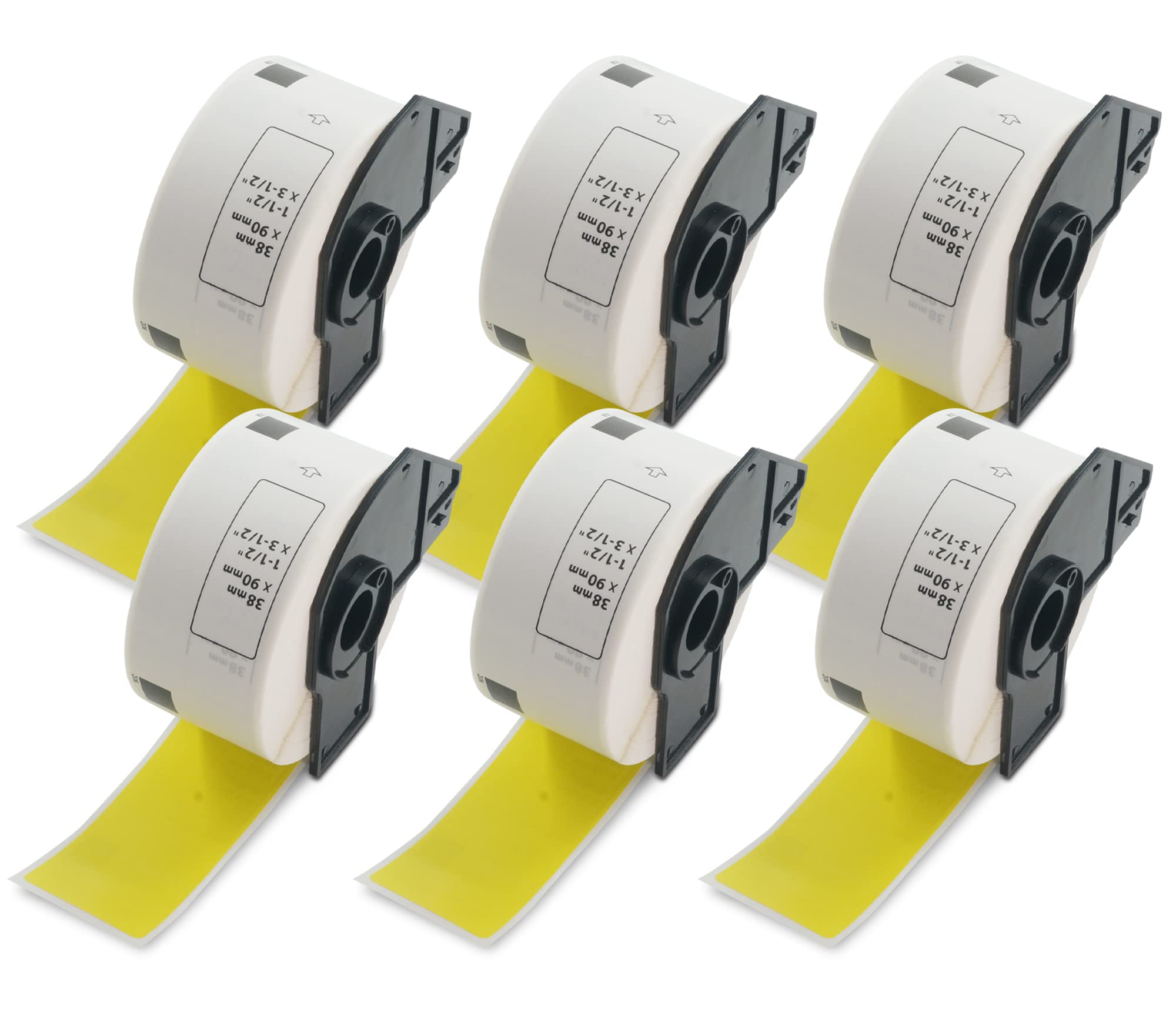BETCKEY 感熱紙 DK-1208 ブラザー ラベル プリンター ロール 互換 ラベルシール BROTHER 38x90mm 400枚 QL-550 QL-650TD QL-700 QL-800 QL-820NWB QL-1060N対応 食品 6個 黄