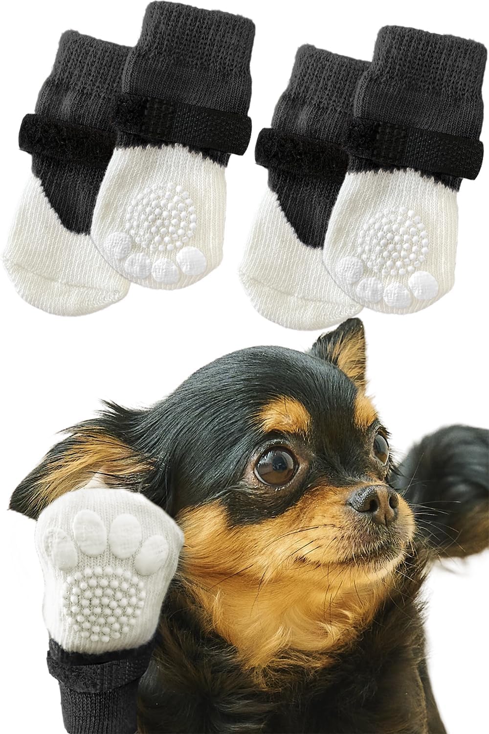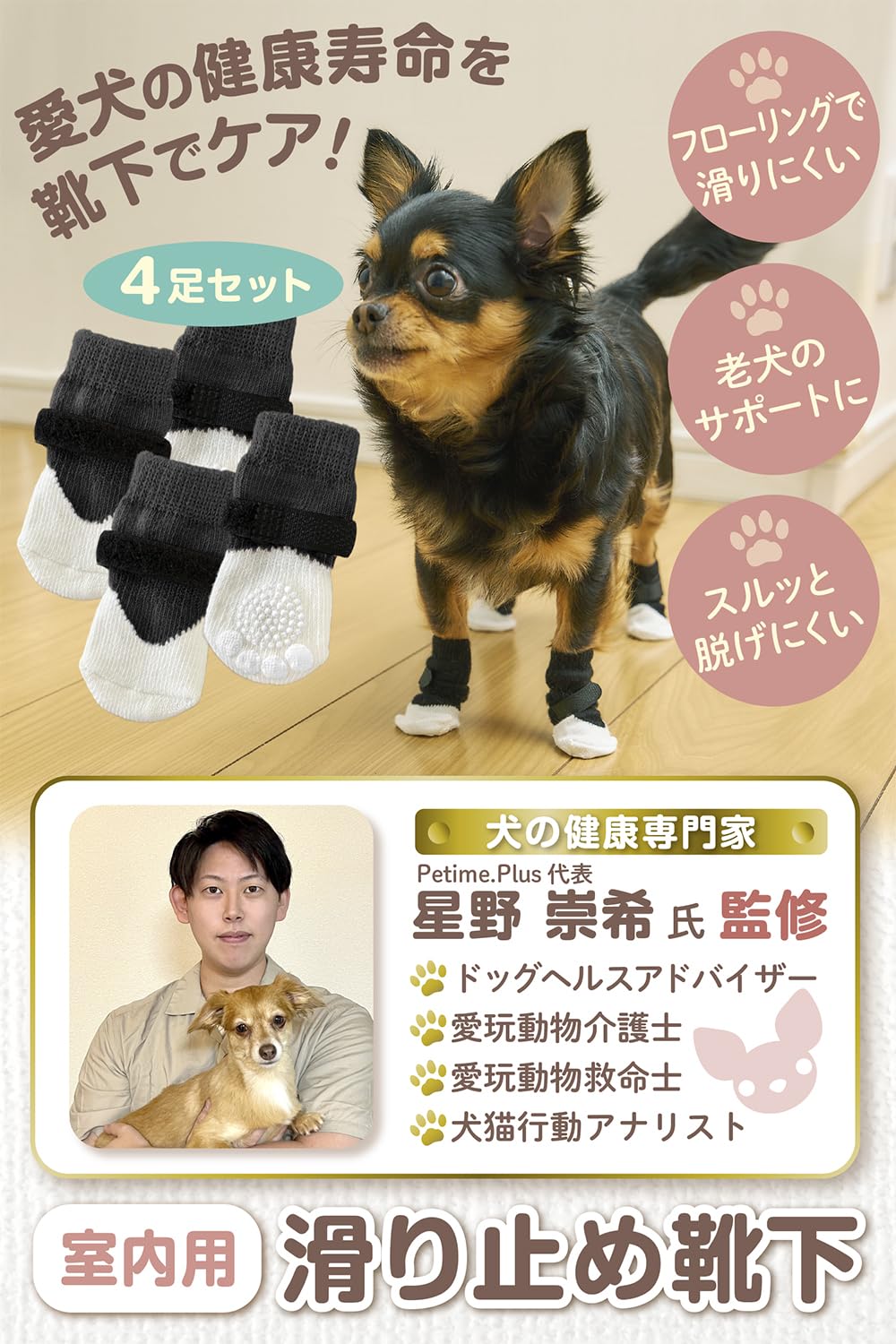 ETLIFE 犬 靴下 滑り止め 【靴下がスルッと脱げにくい】犬用靴下 犬用 屋内用 傷 舐め防止 マジックテープ付き (ブラック, Sサイズ)