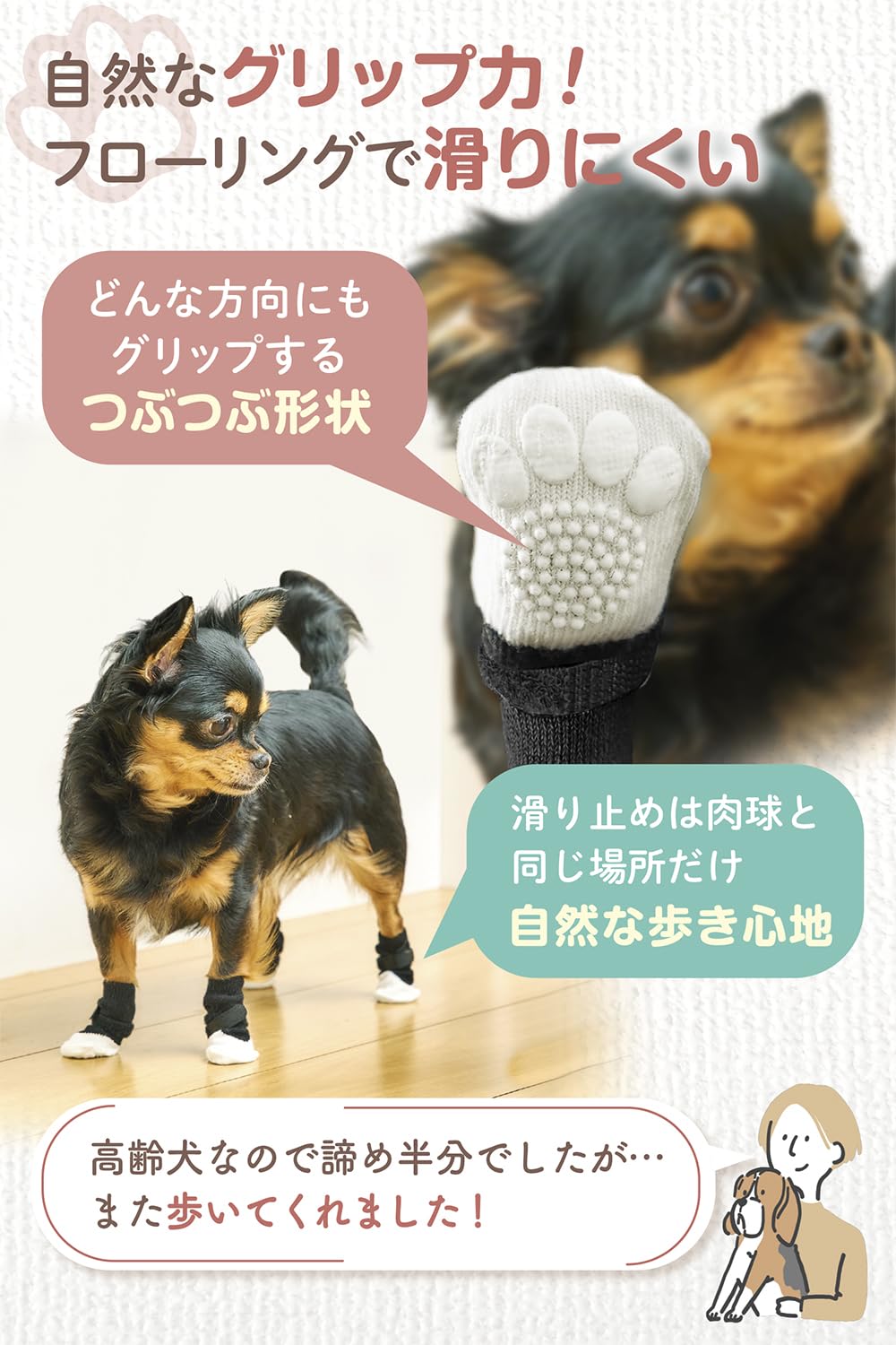 ? 老犬のサポートにも : 老犬や高齢犬など肉球のグリップ力が衰えてきても、靴下の滑り止めで歩けるようにサポート効果も(ご愛犬により効果には個体差があります)。