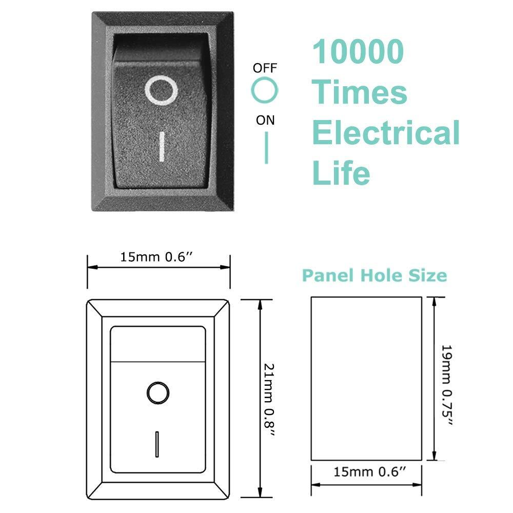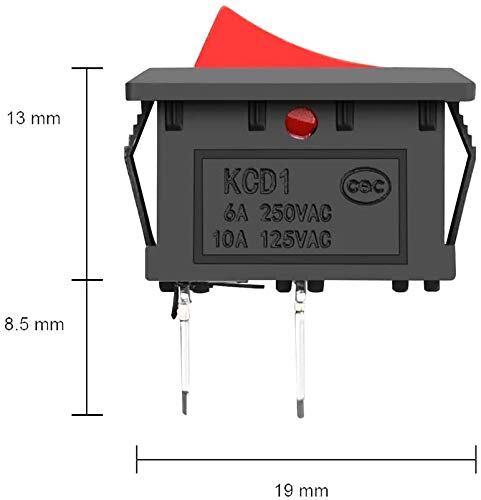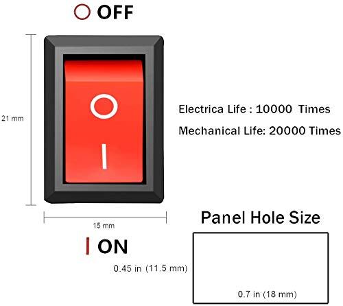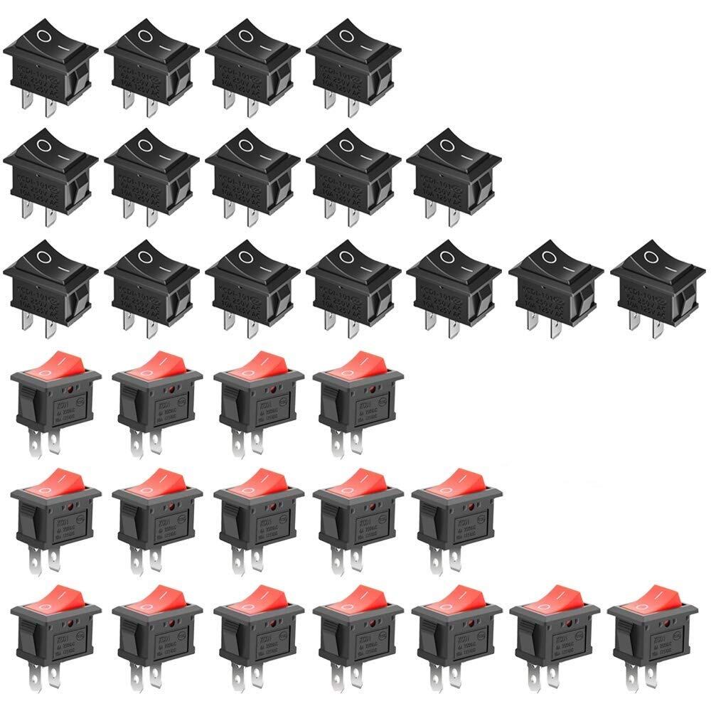 GTIWUNG 32個 入り 照明なし 赤/ブラック ロッカスイッチ オン-オフ ON-OFF SPST オートボートロッカートグルスイッチスナップ 2ピン 125VAC/10A 250VAC/6A 長方形 15mm x 21mm