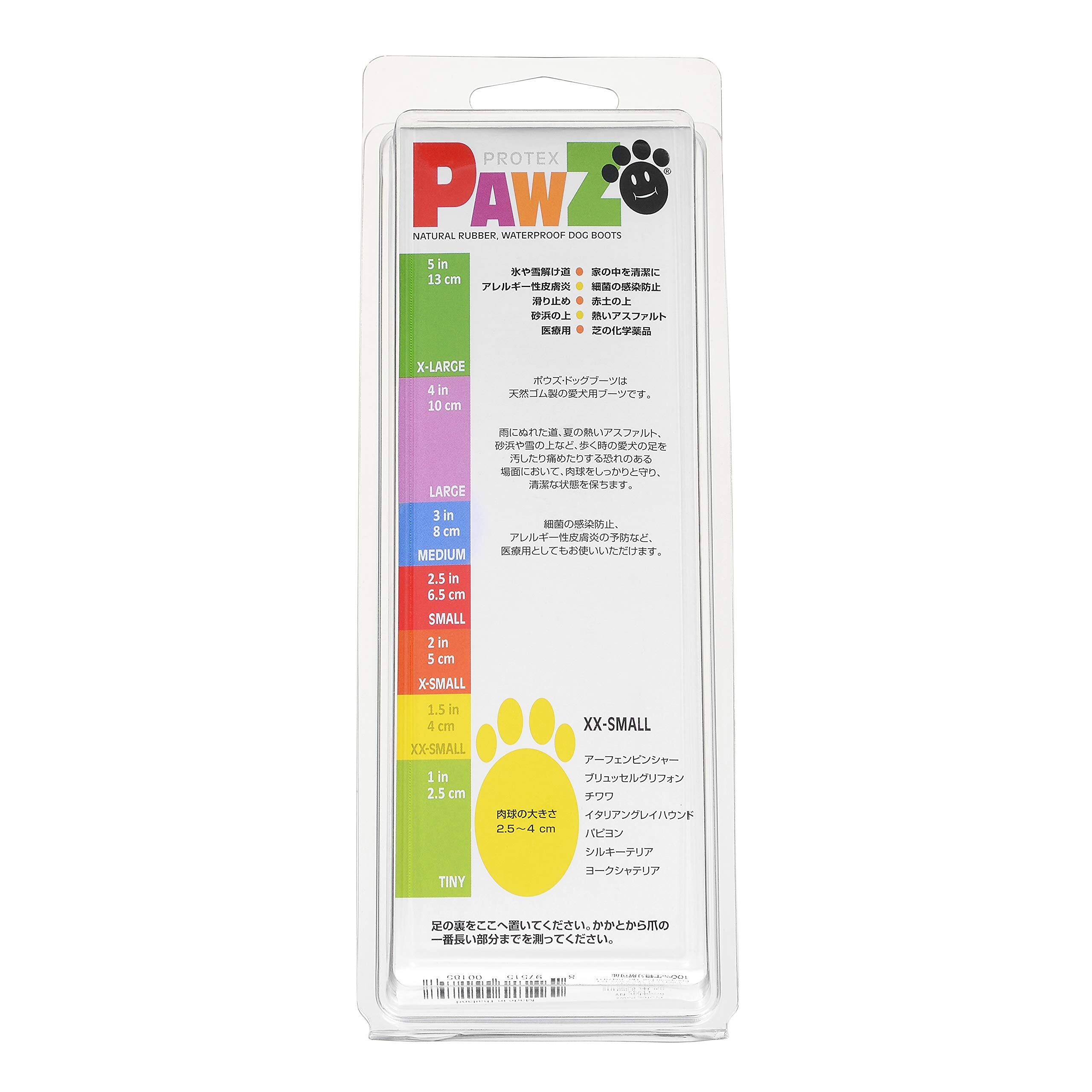あらゆる悪環境から愛犬の肉球を守ることができる、使い捨ての100%天然ゴム製のブーツが「ポウズ・ラバードッグブーツ」です。外へと散歩に出た時に肉球を汚さずに済むのはもちろん、夏の暑いアスファルトや砂浜を歩いた時にはやけどから守ることもできます。冬場は雪の上を歩いた時には凍傷を防止し、凍結防止剤がまかれたアスファルトの上を歩いた時にも肉球の安全を守ってくれます。インドアの床を歩いた時には滑り止めとしても使えます。シニア犬の介護用としてお使いただく愛犬家の皆様も多くいらっしゃいます。破れるまでは繰り返し使うことができ、素材は正分解可能なので、破れたらゴミとして捨てる必要もありません。 本商品は日本限定のパッケージとなります。万が一、英語のみで書かれたパッケージの商品がお手元に届いてしまった際は、正規品番ではございませんので、ご購入された出品者まで返品などのお問い合わせをお願いいたします。 使用上の注意 使い捨てですが、使い終わっても破れていなければ交換する必要はありません。破れるまで何度でもお使いいただけます。 原材料・成分 天然ゴム 使用方法 お散歩時などに、ワンちゃんに履かせてください