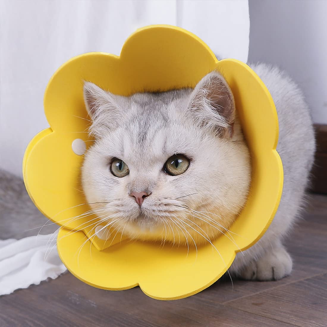 【獣医師推奨】Apettogo エリザベスカラー 猫 犬 ソフト 軽量 防水 傷舐め防止 引っ掻き防止 傷口保護 手術後のケア 柔らかい (イエロー、M)