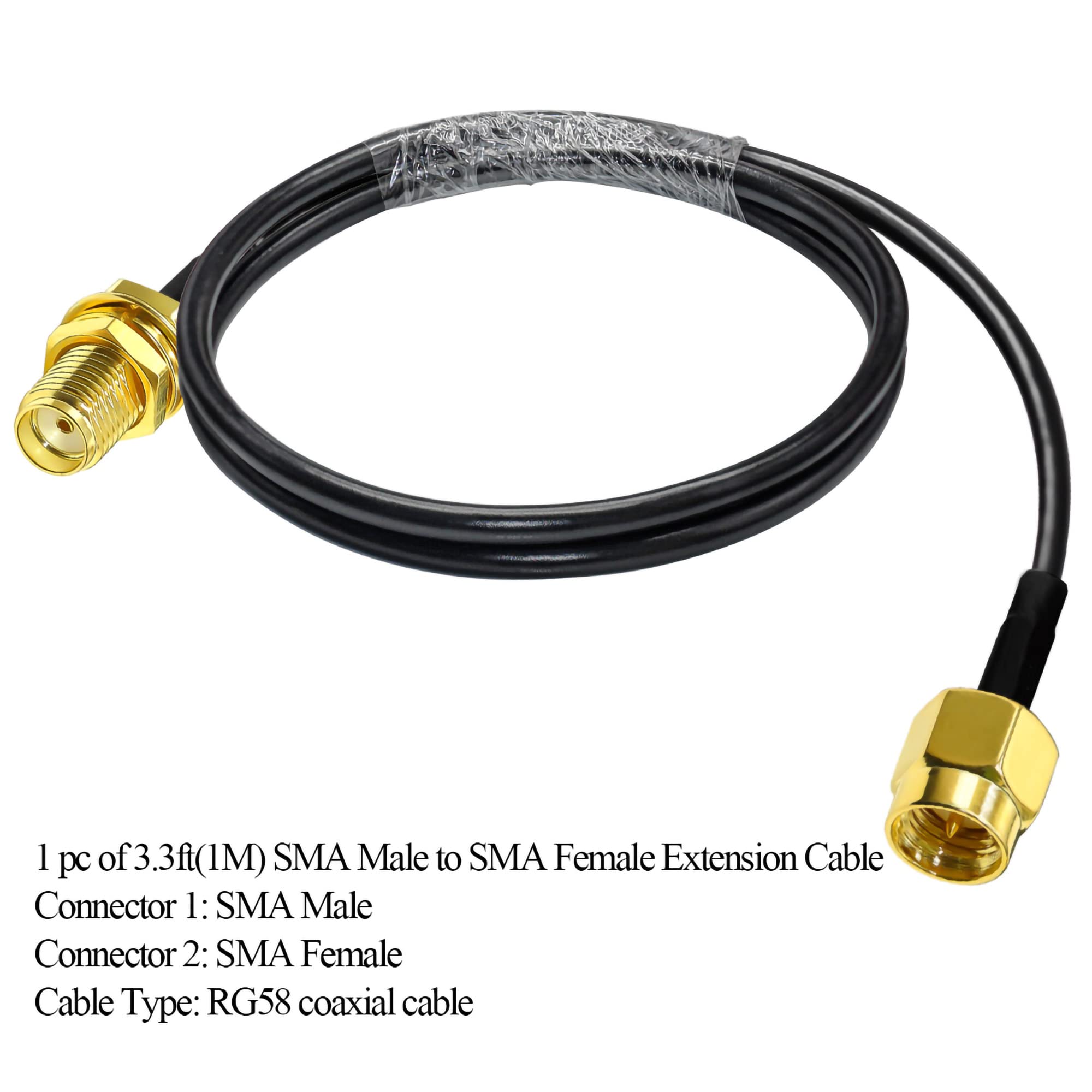 RG58 SMA RF同軸ケーブル、3.3フィート(1M) SMAオスからSMAメス延長ケーブル 低損失RFジャンパー同軸ケーブル アンテナ、CBラジオ、GPS、RFデバイス用(テレビ用ではありません)