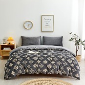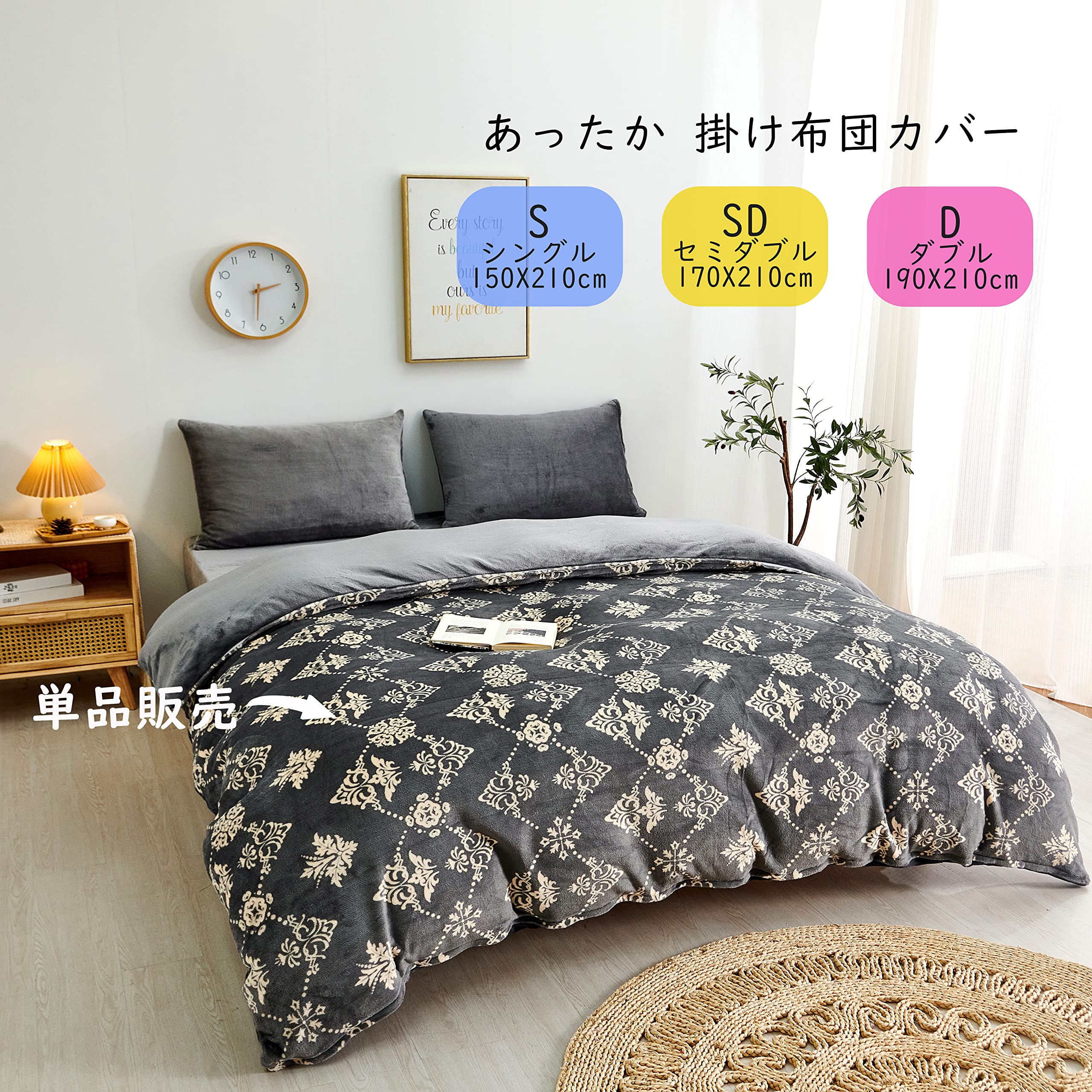 【特価在庫】Tametra 掛け布団カバー あったか 布団カバー マイクロファイバー フランネル 毛布タッチ 冬用 北欧風 抗菌 毛玉なし 静電気防止 防寒対策 着脱簡単 通気性 暖かい 保温性 全開ファスナー 6ヶ所ひも付 洗える (シングル・150X210cm 欧風柄グレー) | GIGATERA