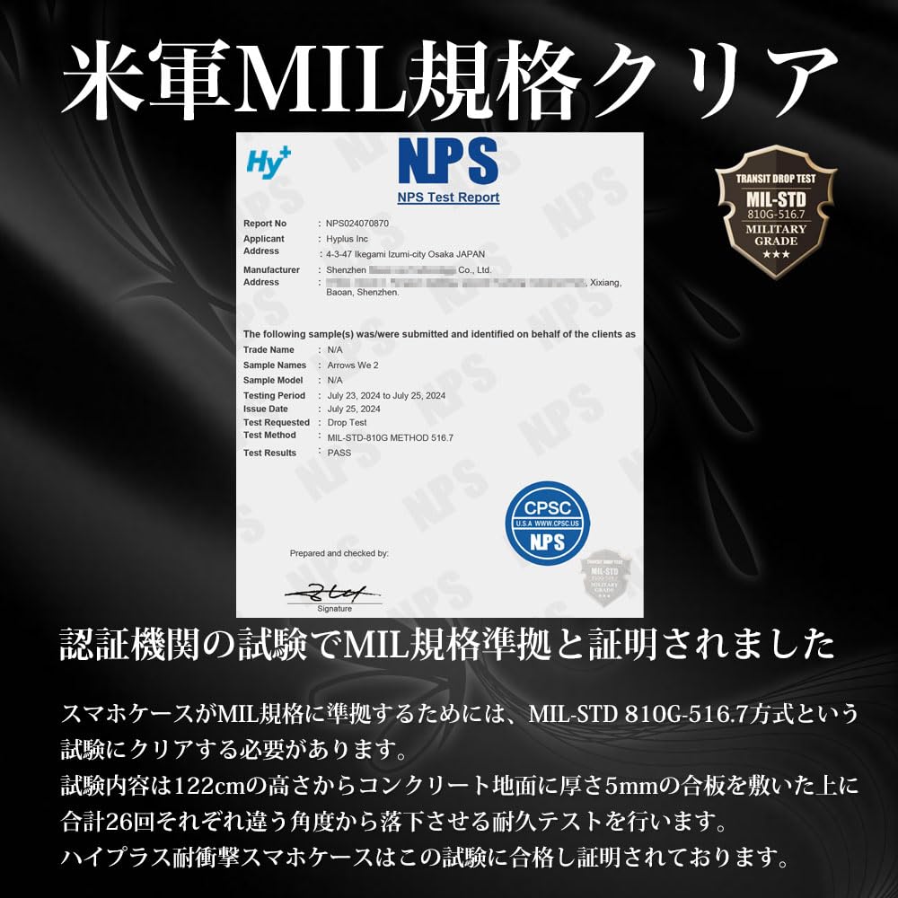 【MIL規格準拠の耐衝撃性能】米軍MIL規格(MIL-STD-810G)に準拠した設計で、落下や衝撃からスマホを強力に保護。