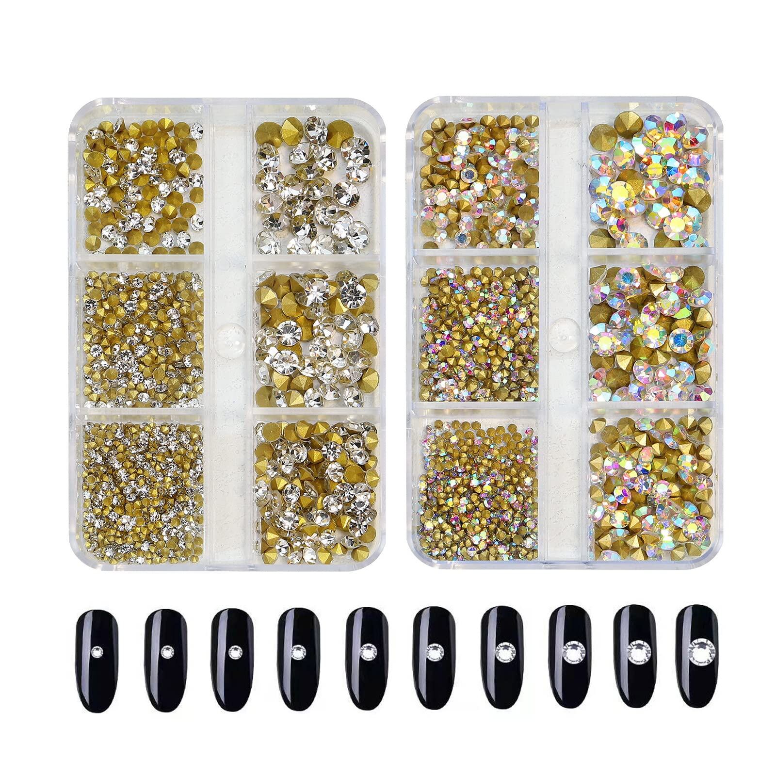 【セール】ネイルパーツ ラインストーン クリスタル クリア オーロラ vカットストーン ネイル用ストーン 2mm/3mm/4mm ジェルネイル デコ素材 デコパーツ レジン 手芸 ハンドメイド 2個セット (2ケース C) | GIGATERA