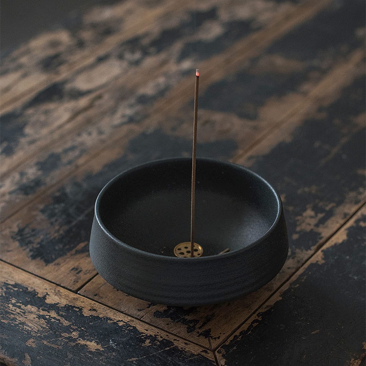 直径13cm お香立て おしゃれ 陶器製 香炉 線香立て インテリア 高級 御洒落 和風 室内 仏壇用 (ブラック)