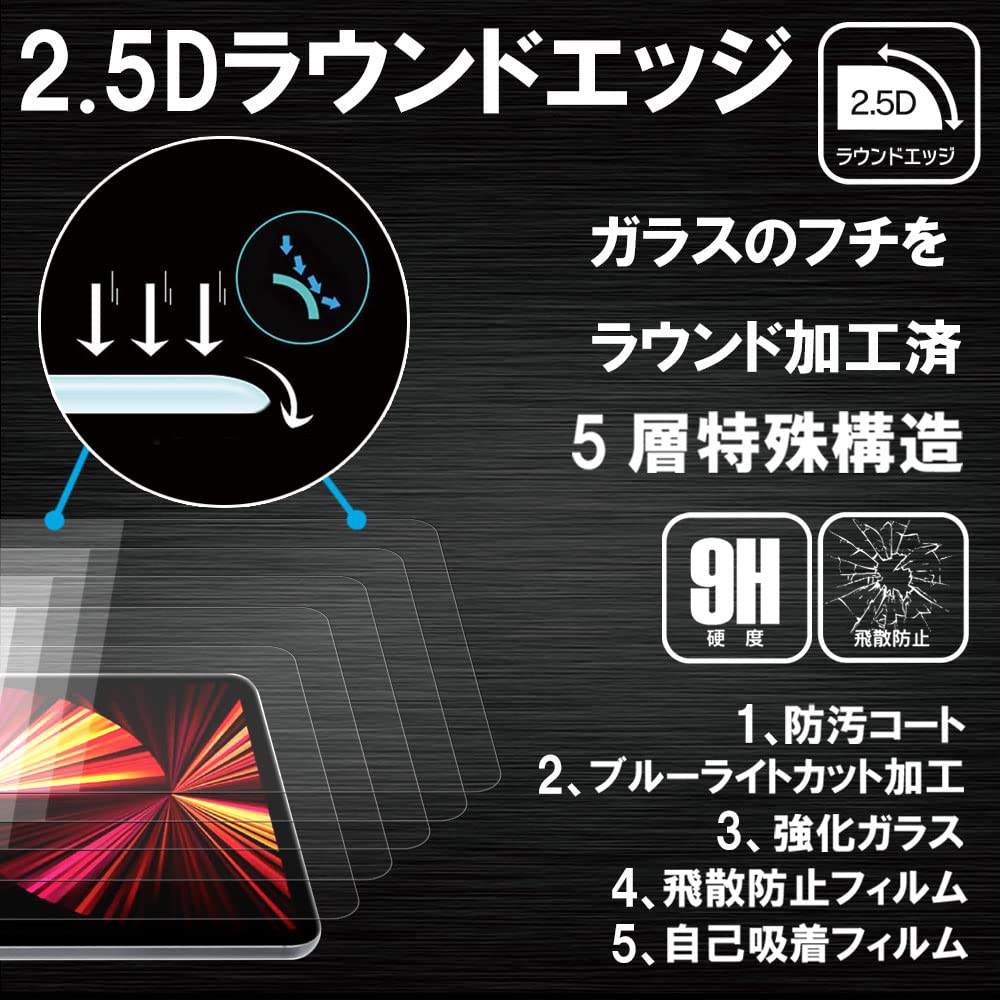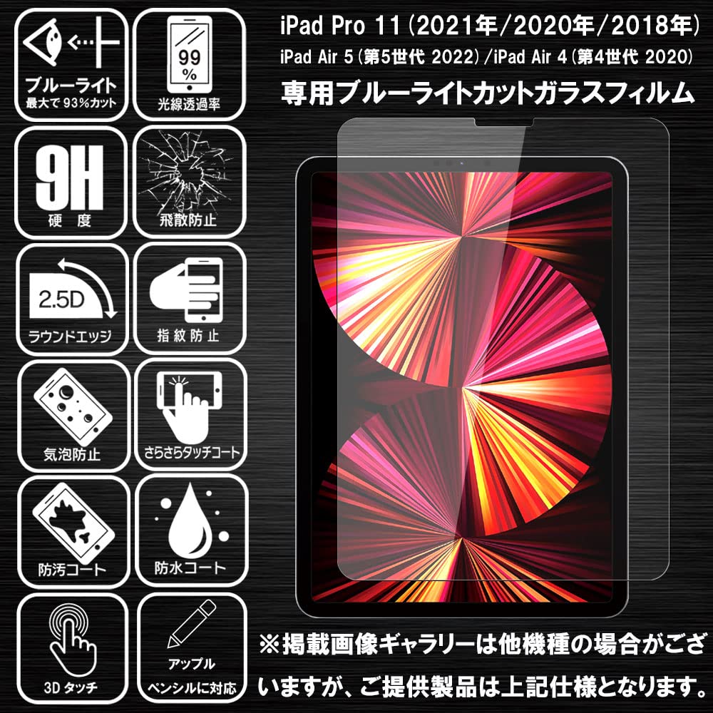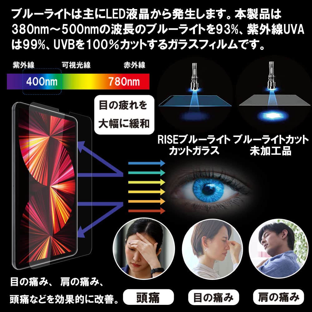 【ブルーライトカット 93%】RISE ガラスフィルム フィルム iPad Pro 11 2022 第4世代 M2/iPad Air 第5世代 Air5 2022/iPad Air 第4世代 2020/iPad Pro 11 2021/2020/2018/iPad Air 10.9 用 保護フィルム 強化 ガラス 光沢 日本製 旭硝子 硬度9H 2.5Dラウンドエッジ 自動吸着 気泡ゼロ 飛散防止 指紋防止 撥水撥油 3D タッチ For iPad Air5/4 iPad Pro 11