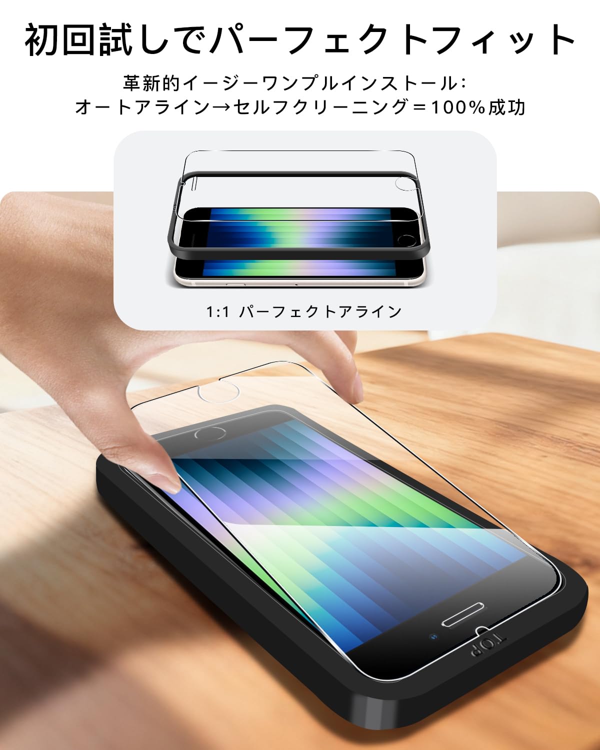 【?高透過率?高タッチ感度】用 iPhone SE 第3世代 / 第2世代 ガラスフィルムは極薄0.26 mm、高透過率、HDで鮮明な色彩を邪魔しない高い透過度があり、アンチグレアタイプで長時間画面を見つめることでの目の疲れをケアする効果が見込めます。用 アイフォンSE3 / SE2 / 8 / 7 / 6 / 6s ガラスフィルムは3D Touch対応、指紋のロック解除などのタッチが敏感で滑らかで、操作に遅延がなく、快適に利用できる液晶ガラスフィルムです。