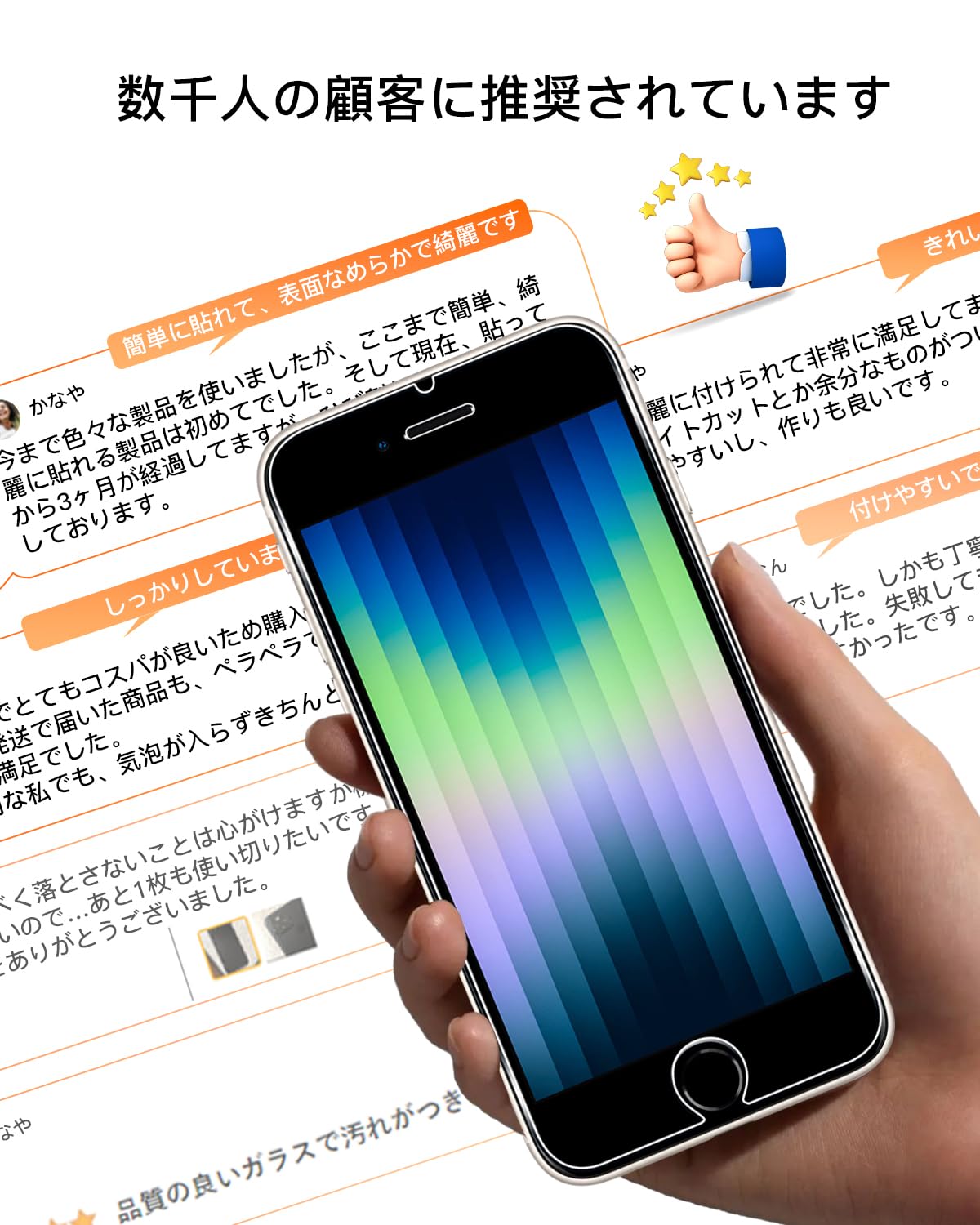 【?安心な】 用 iPhone SE3 / SE2 / 8 / 7 / 6 / 6s 強化ガラスフィルムには180日間の安心ながあり、お届け前に検査スタッフが1枚づつ品質チェックしておりますが、万が一製品にご満足いただけない場合は、全額、交換、返品に対応でき、安心してご注文ください。