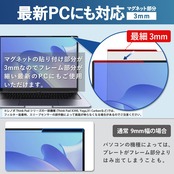 【キズ防止】表面硬度が高い素材を使用しているため、キズがつきにくく、画面をしっかり保護することができます。また、皮脂、汚れ、ホコリも付きにくく、画面を清潔に保てます。※非対応機種:レノボ Think Pad シリーズの一部機種 (Think Pad X390, Yoga,X1 Carbonなど)では、フィルター装着時、スリープセンサーの誤作動によって画面が映らなくなる場合があるのでご注意ください。その場合は、マグネットの位置をセンサーからずらして調整することによって改善される可能性があります。