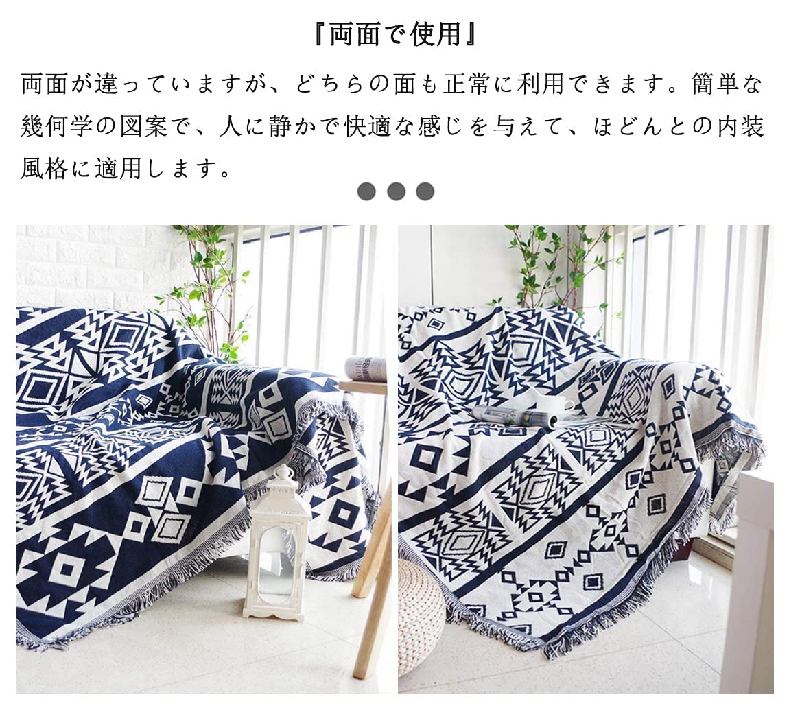 北欧風 マルチカバー 長方形 ソファーカバー 多機能 ブランケット マルチカバー ソファ ベッドカバー フリンジ付き 綿 1人掛け 2人掛け カウチ ベッドカバー 毛布 テーブルクロス テーブル掛け枚 おしゃれ 両面使える 水洗い 四季通用(130*180cm)