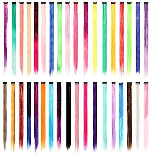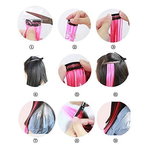 [Bestechno] ベステクノ カラーエクステ 全36色 10本セット グラデーションカラー ワンタッチ簡単着用 クリップ式 ウィッグ つけ毛 (鮮明なピンク33)