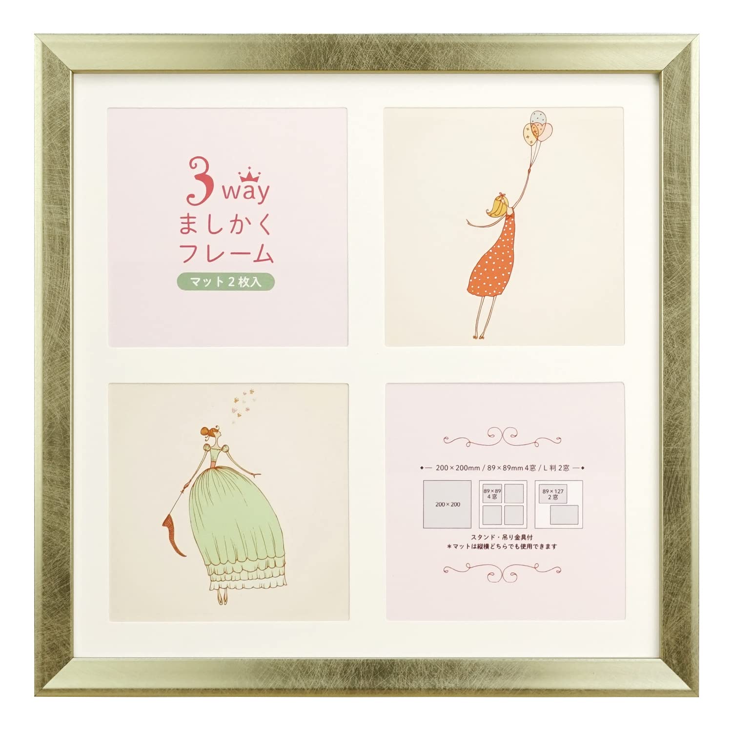 マット台紙2枚付き(紙マット) 1. 89×89mm写真×4窓:[マット窓寸]79mm×79mm×4窓、2. L判写真×2窓:[マット窓寸]79mm×117mm×2窓