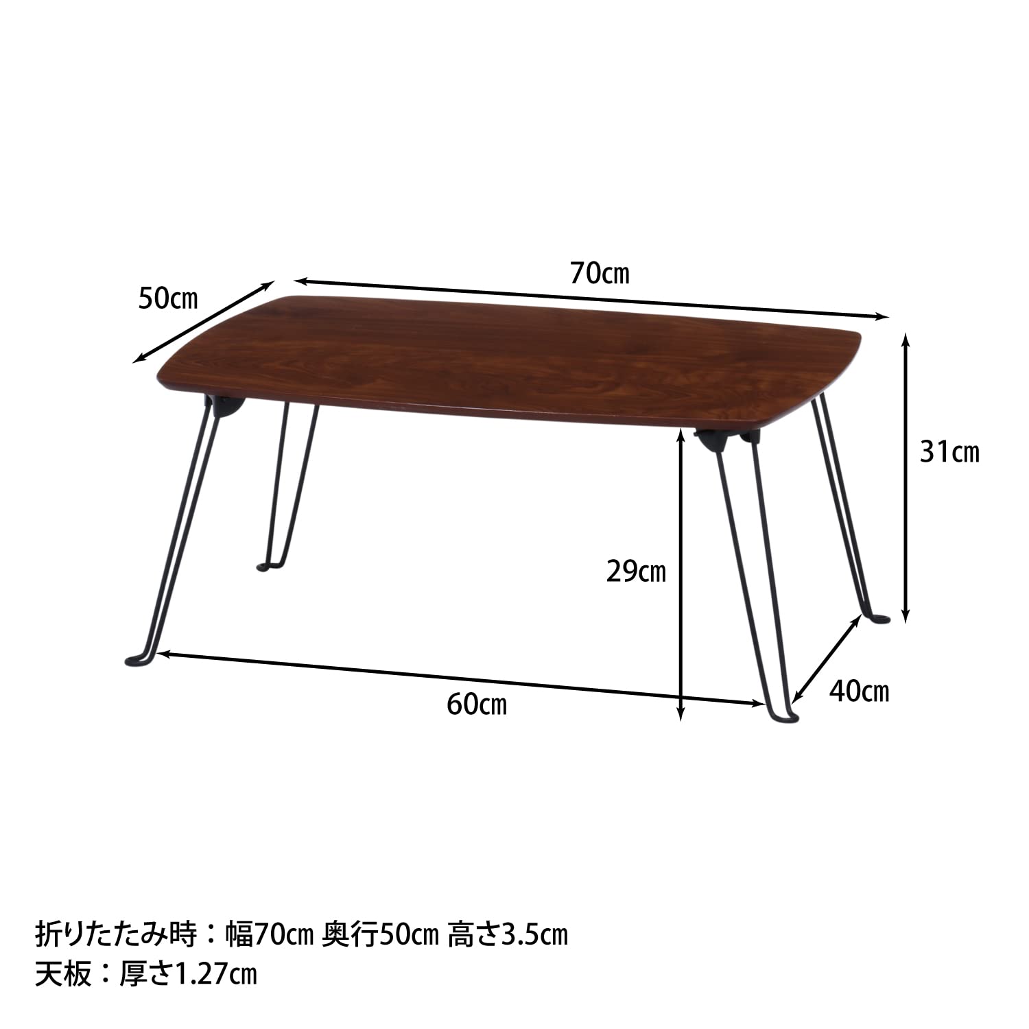 不二貿易 折りたたみテーブル ローテーブル 一人暮らし 単身 コンパクト ミニテーブル スクエア 角が丸い 軽量 幅75×奥行50×高さ31cm ブラウン トロン 15236