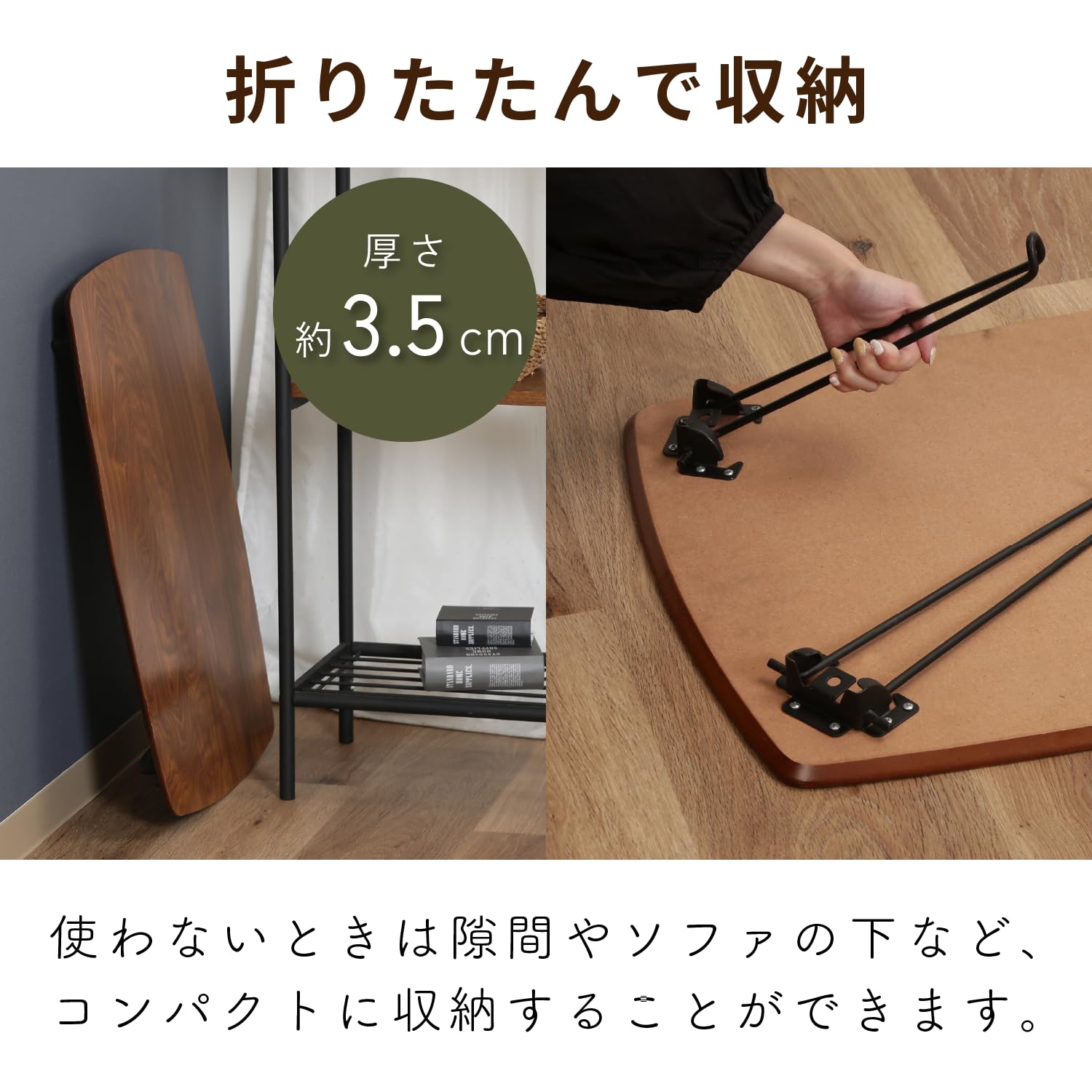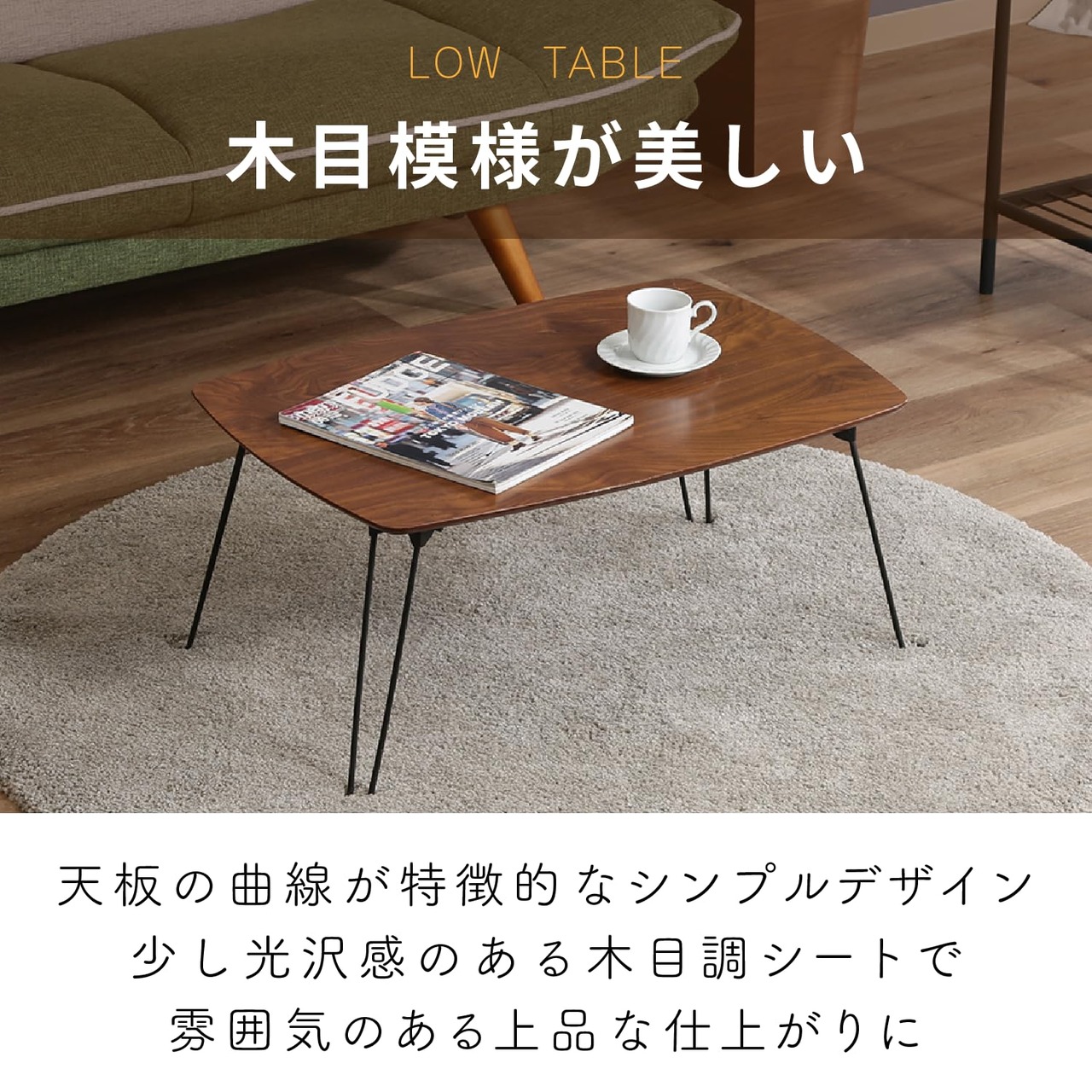 【セール】不二貿易 折りたたみテーブル ローテーブル 一人暮らし 単身 コンパクト ミニテーブル スクエア 角が丸い 軽量 幅75×奥行50×高さ31cm ブラウン トロン 15236 | GIGATERA