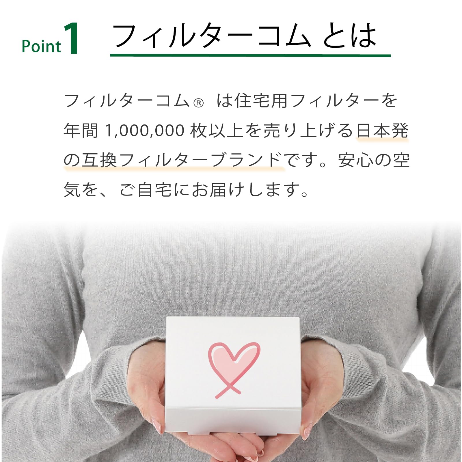 【フィルターコムとは】住宅用フィルターを年間1,000,000枚以上を販売している日本製の互換フィルターブランドです。安心の空気を、ご自宅にお届けします。