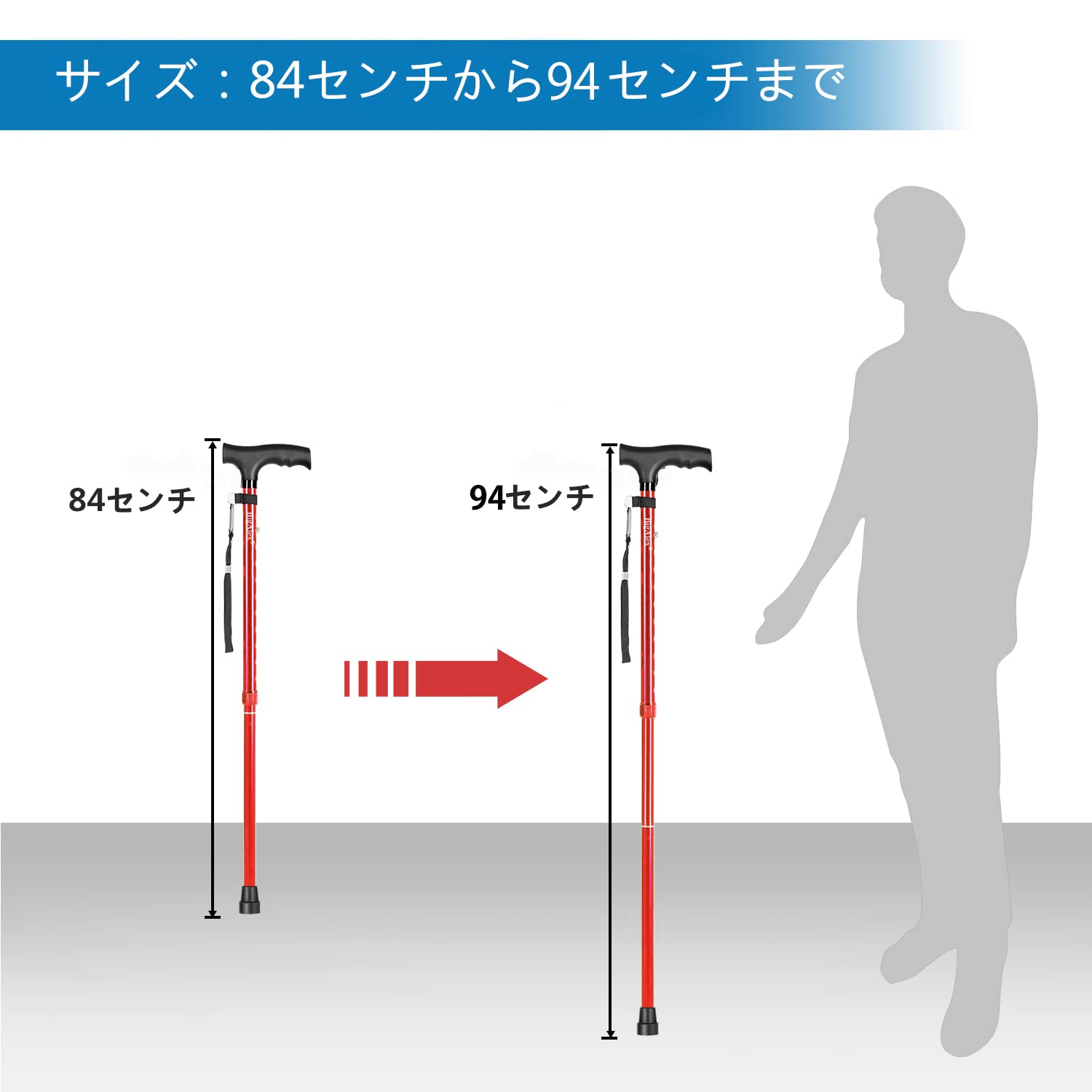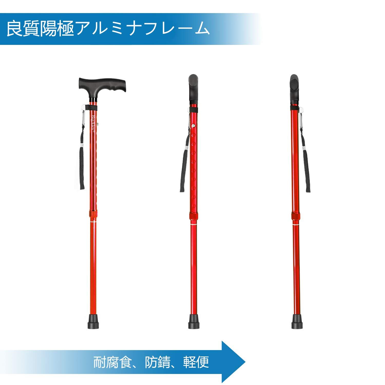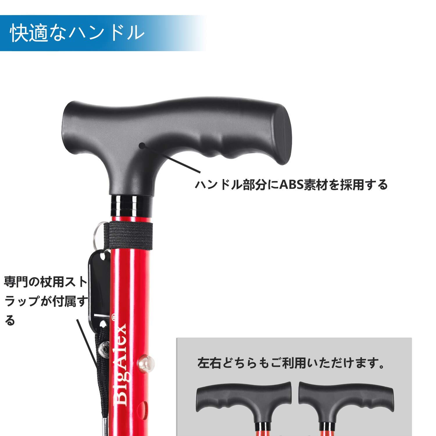 ビグアレクス(BigAlex)折りたたみ 杖 ステッキ 杖 伸縮杖 軽量 アルミ 長さ調整可能 高齢者 夜間散歩 歩行支援