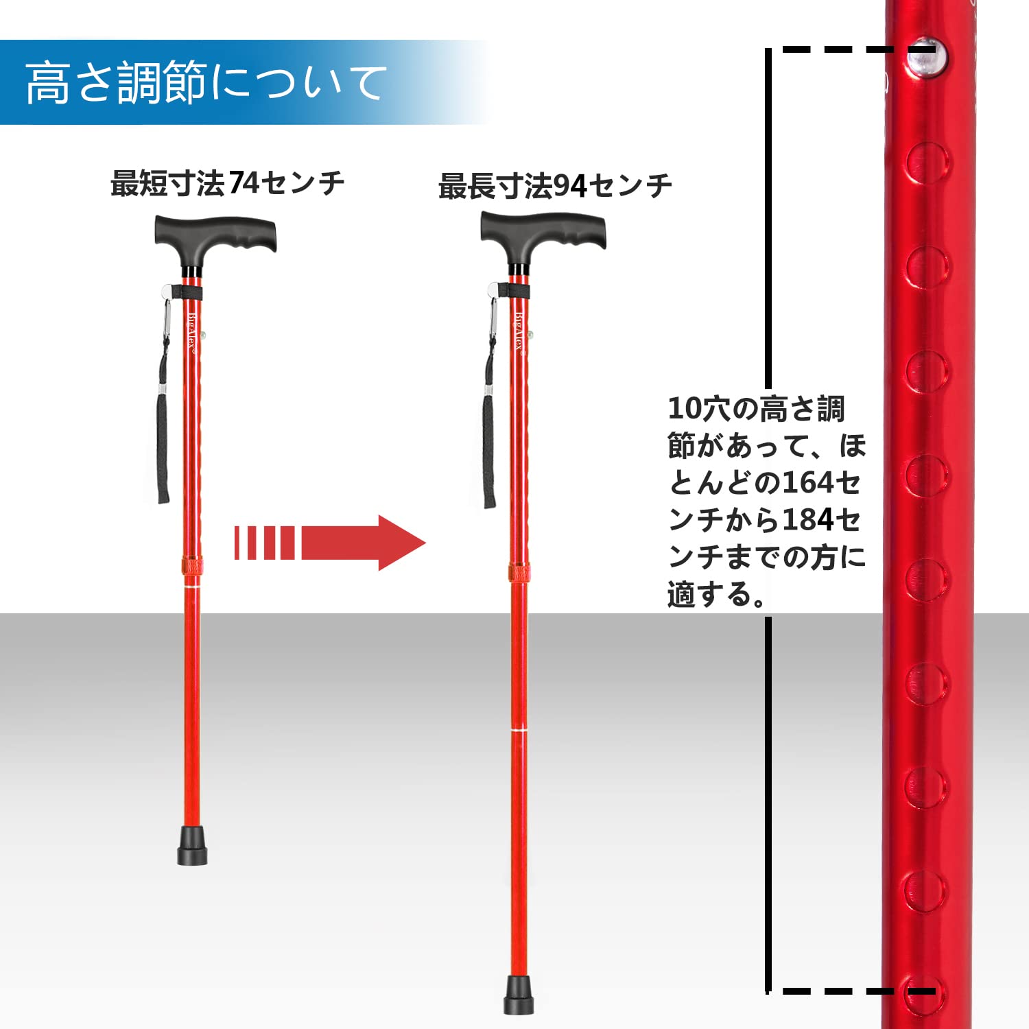 軽量調整可能なアルミ合金製パイプ:耐食アノードのアルミナで作られたステッキで、重さはわずか320g、軽量ながら丈夫なステッキは約100キロの重量をサポートしています。