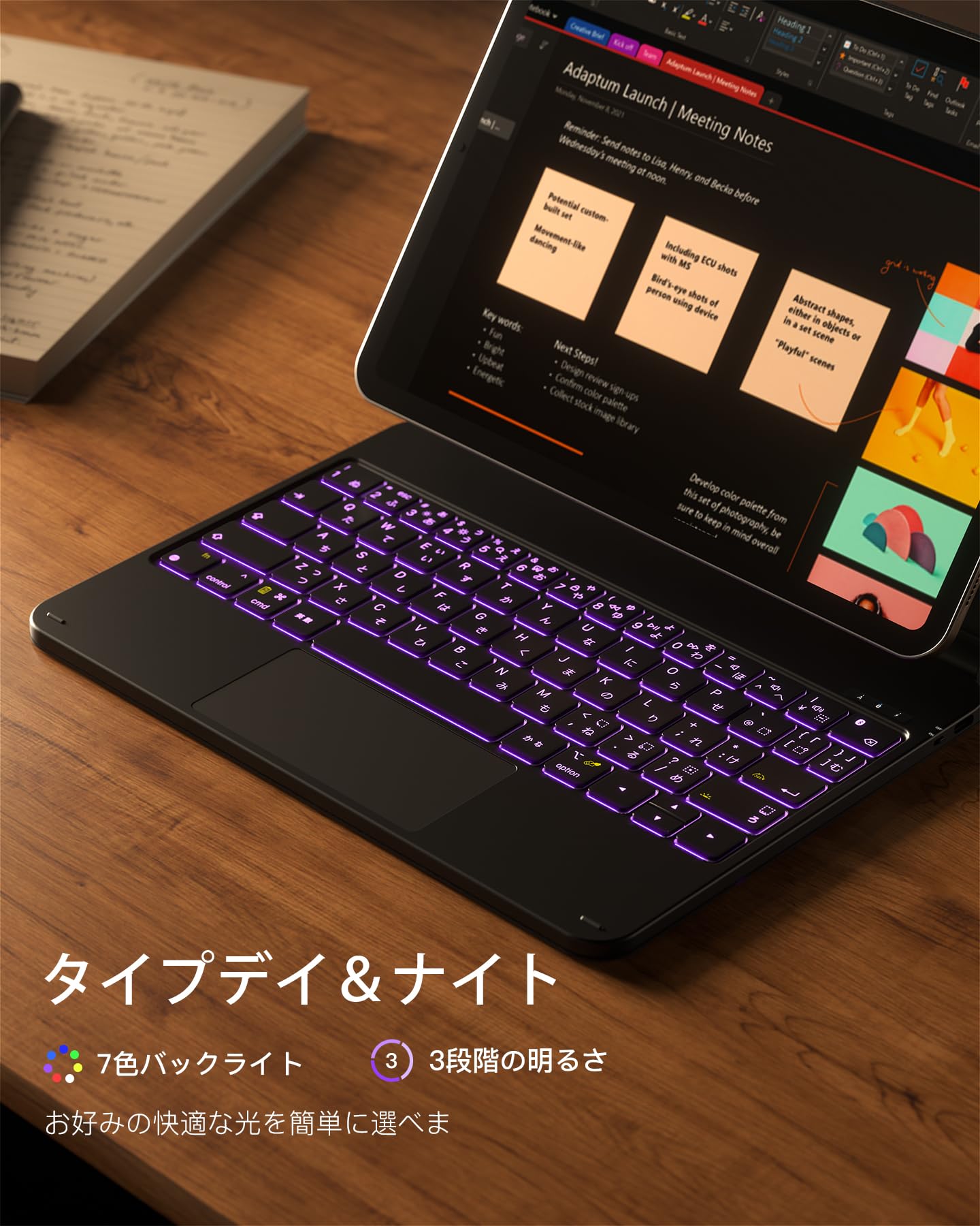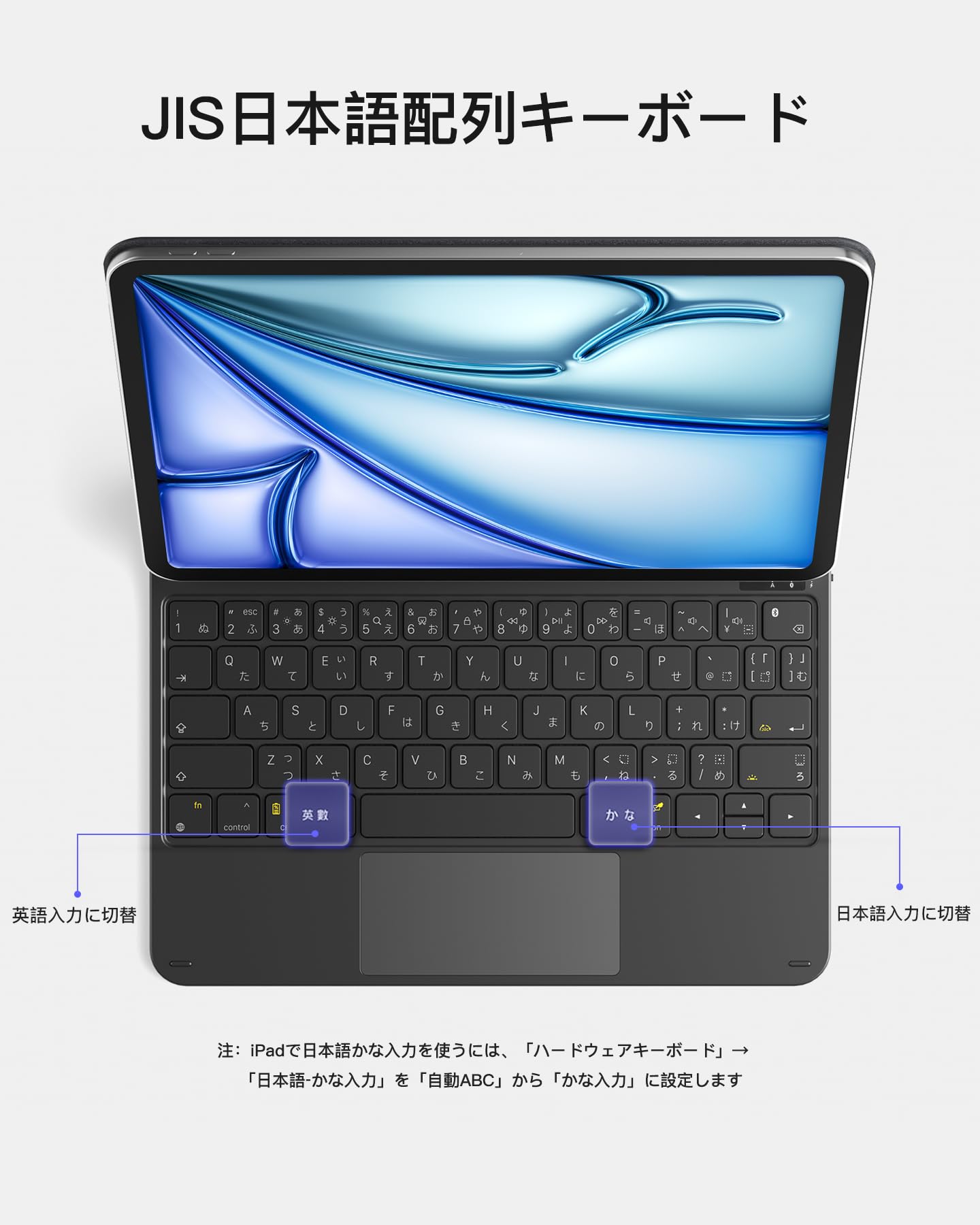 Inateck マジックキーボード JIS日本語配列 iPad 2024 Air 6 M2 2024/M3 2025 11インチ対応 iPad Air 第6/5/4世代 キーボード付きケース iPad Pro 11 第4/3/2/1世代対応 トラックパッド搭載 7色バックライト 磁気吸着 ブラック KB09119