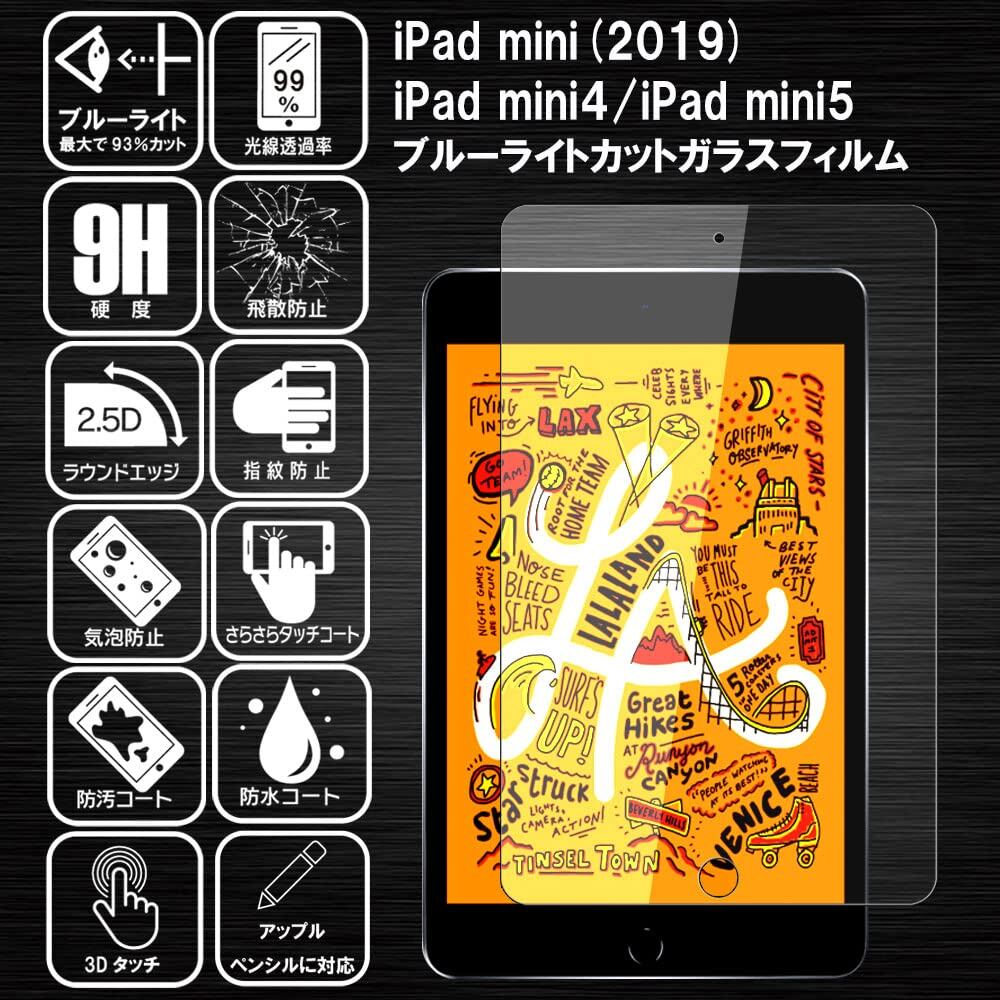 RISE ガラスフィルム フィルム ブルーライトカット 93% iPad mini 5 (第 5 世代) 2019年 / iPad mini 4 (第 4 世代) 2015年 用 保護フィルム 強化 ガラス 透過率99% 高光沢 日本製 旭硝子 硬度9H 2.5Dラウンドエッジ 自動吸着 気泡ゼロ 飛散防止 指紋防止 撥水撥油 3D タッチ For iPad mini5/4
