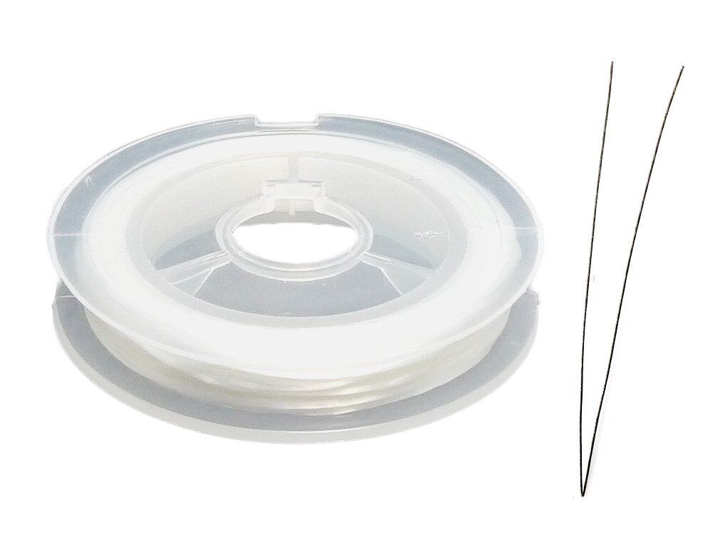 オペロンゴム、ゴム通し用ワイヤー、ブレスレット作り方解説書の3点セットです。