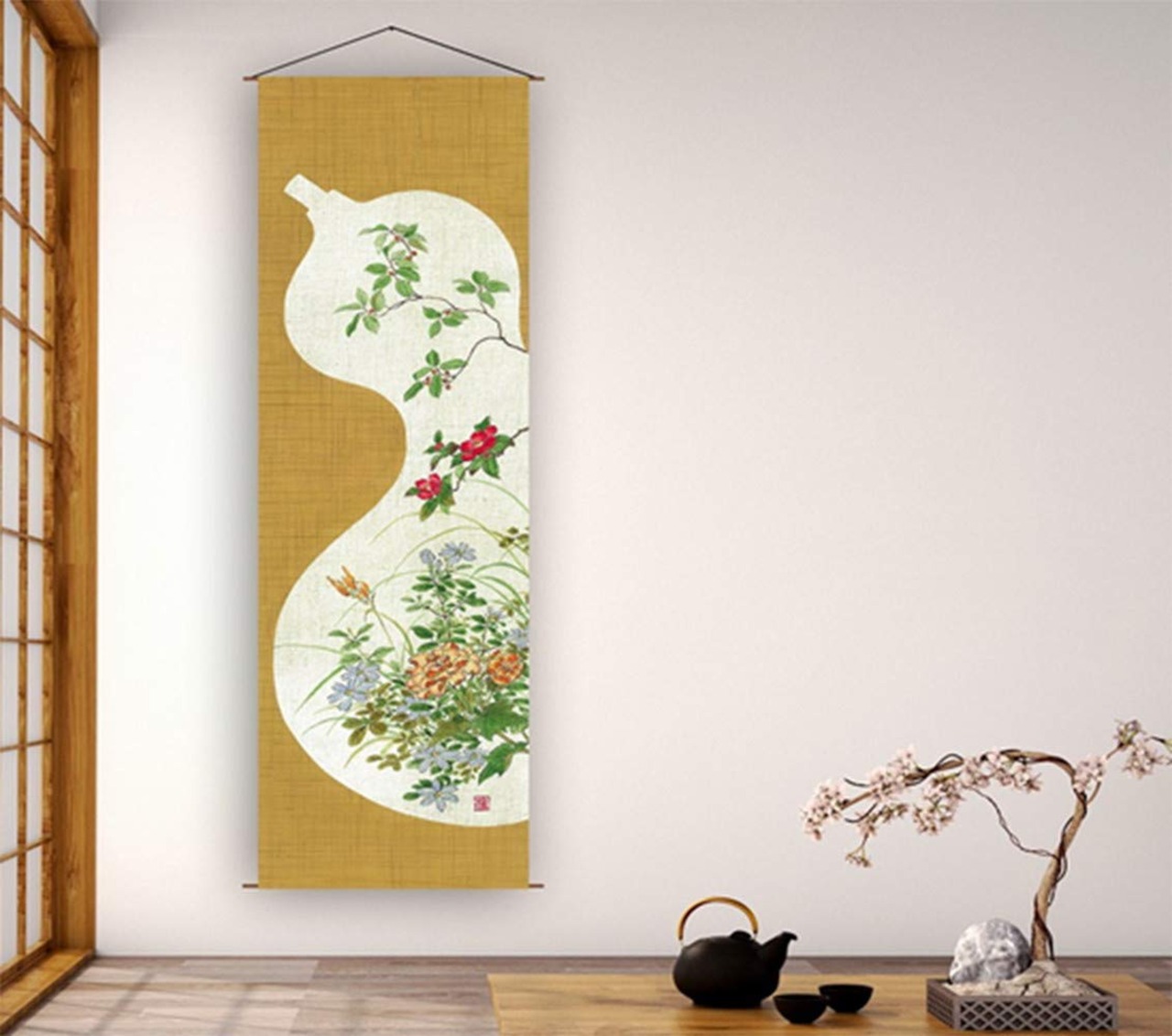 アーリエ(Arie) タペストリー のれん 壁掛け 壁飾り オシャレ インテリア コーディネート お部屋のアクセント 和風 瓢箪 ベージュ 約42cm×120cm 747121