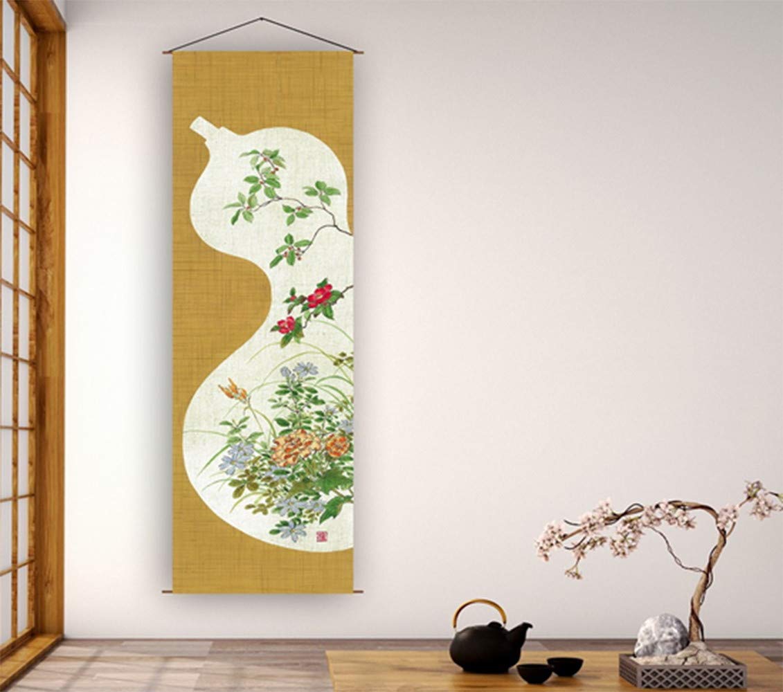 【特価在庫】アーリエ(Arie) タペストリー のれん 壁掛け 壁飾り オシャレ インテリア コーディネート お部屋のアクセント 和風 瓢箪 ベージュ 約42cm×120cm 747121 | GIGATERA