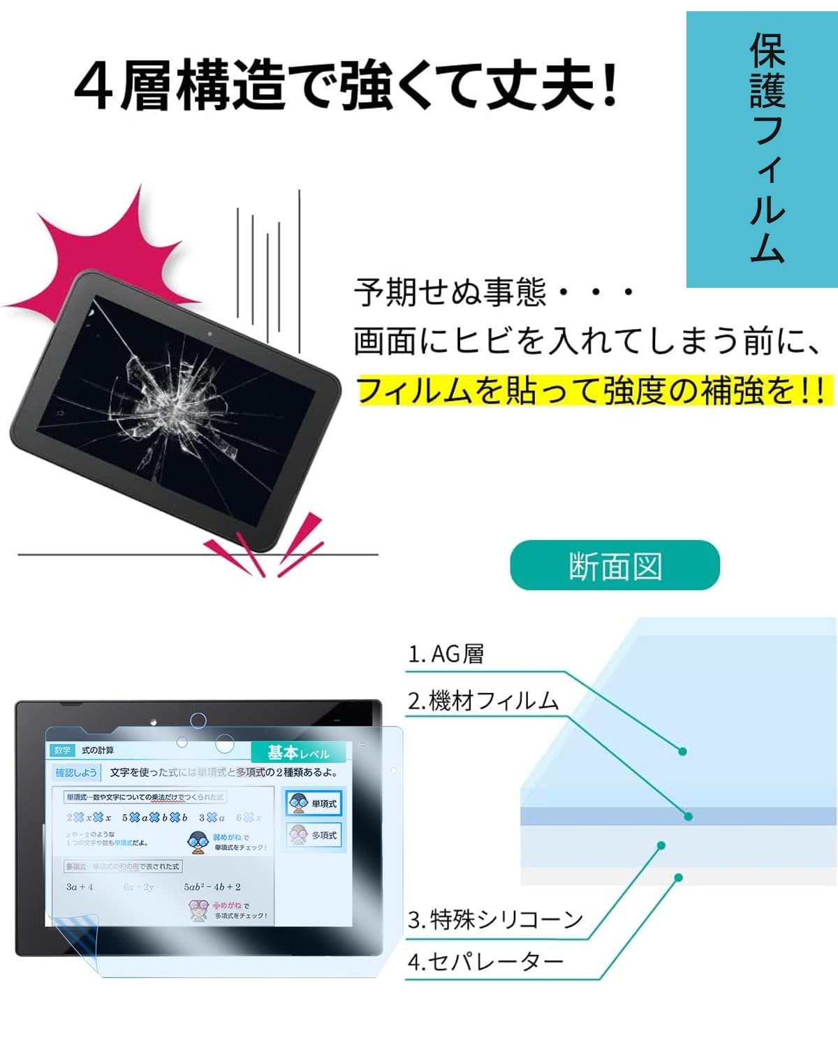 【チャレンジパッドNext用 10.1''対応】高品質のアンチグレア (マット) フィルム製で、取り付けが簡単で、剥がしても跡が残りません。