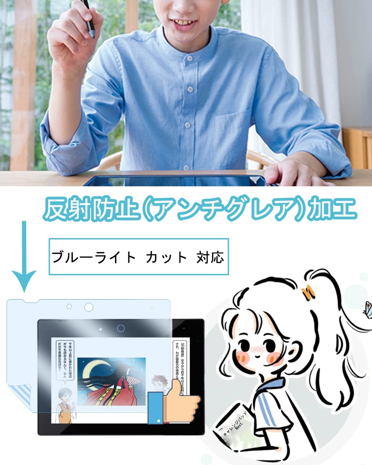 【ギラツキや指紋を軽減】チャレンジパッドNextの画面を日常の傷、ホコリ、擦り傷から守ります。