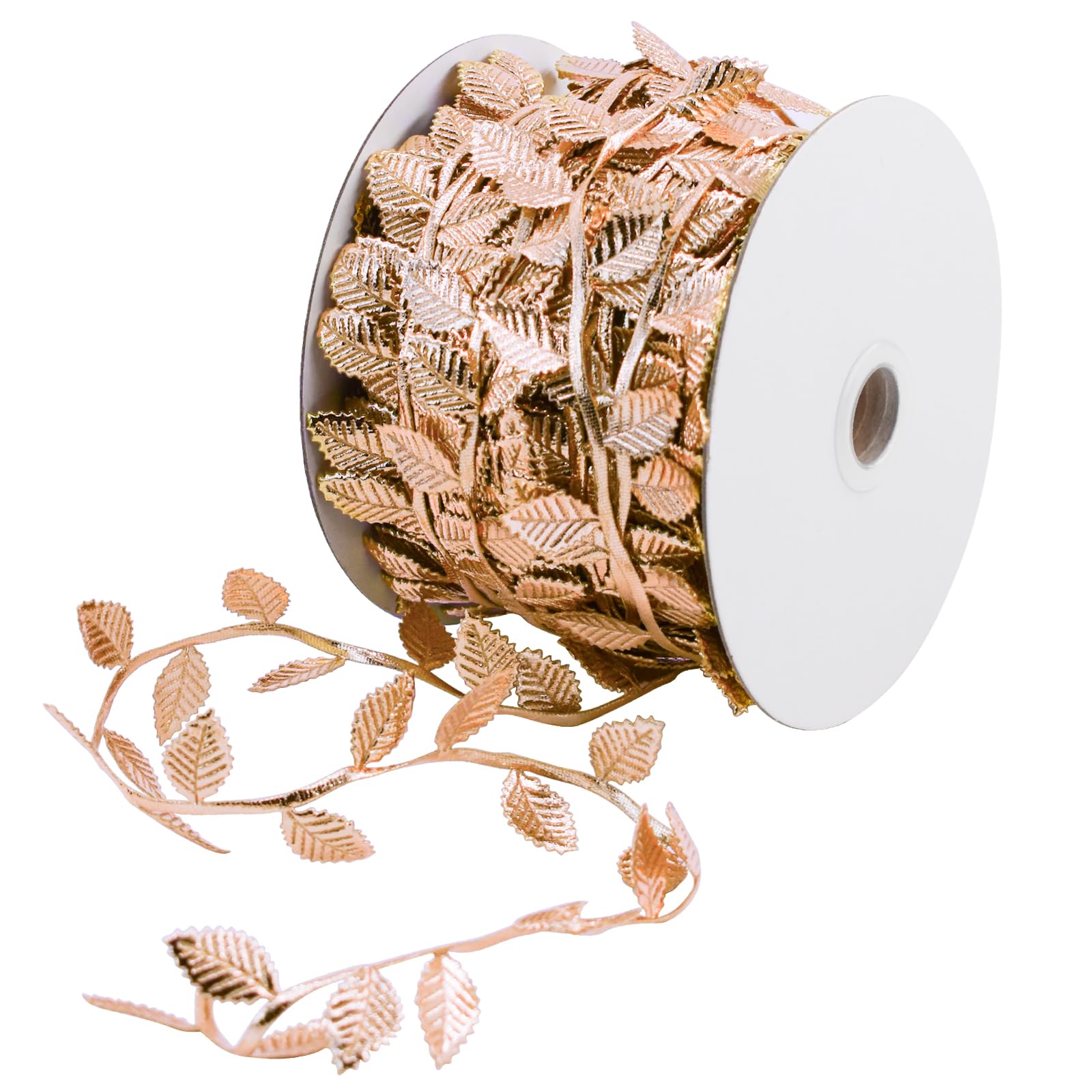 葉っぱ リボン リーフリボン グリーン リボントリム テトロン クリスマス つるリボン 飾り ウェディング 結婚式 花輪作り ギフト包装 パーティー装飾 プレゼント ハンドメイド ホーム装飾 デコレーション インテリア (ローズゴールド)