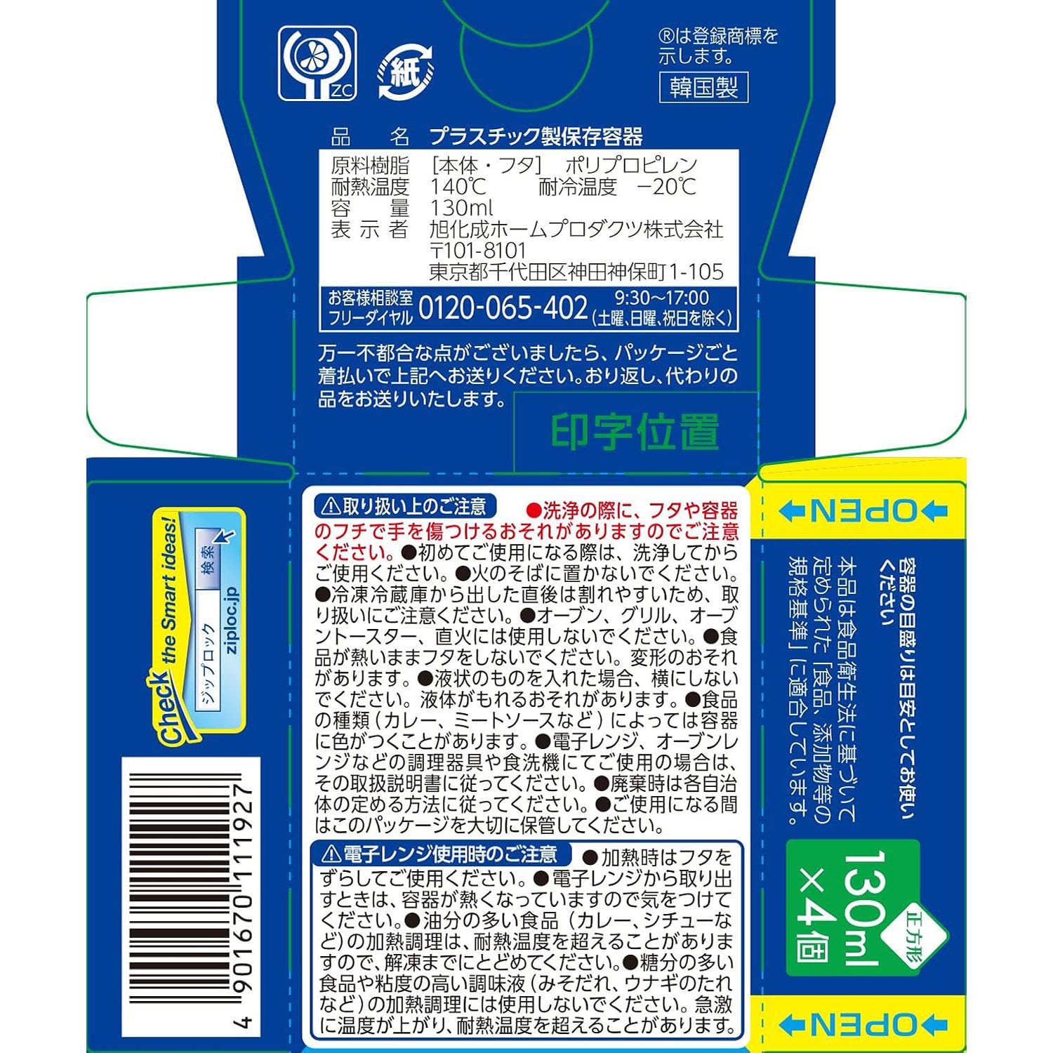 【まとめ買い】 ジップロックコンテナー正方形 130ml 台所用品 4個入 × 2セット