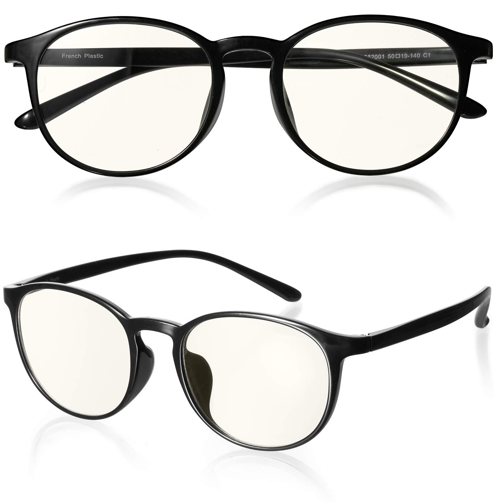 [ROTAKUMA] ブルーライトカット メガネ PC眼鏡 パソコン用 JIS規格40% UVカット99.9% 超軽量14g ボストン型 おしゃれ 紫外線カット メンズ レディース ユニセックス 度なし 伊達めがね (ブラック)