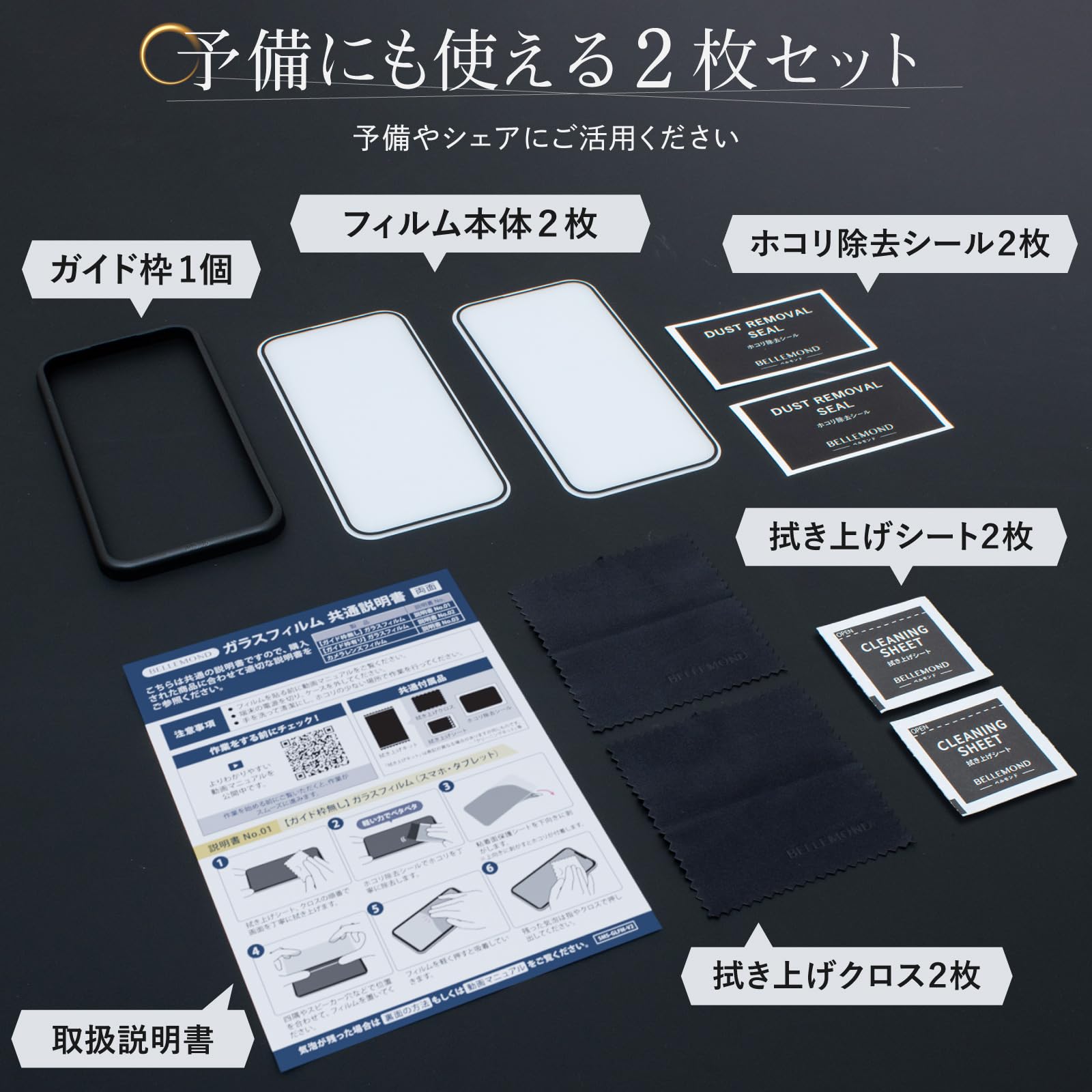 【数量限】侍プロテクター iPhone 16 Plus / 15 Plus 用 クリア ガラスフィルム | 2枚セット ガイド枠付き 旭硝子素材 黒縁あり 全面保護 | 貼りやすい アイフォン16 プラス / 15 プラス 用 保護フィルム ベルモンド B1351 | GIGATERA