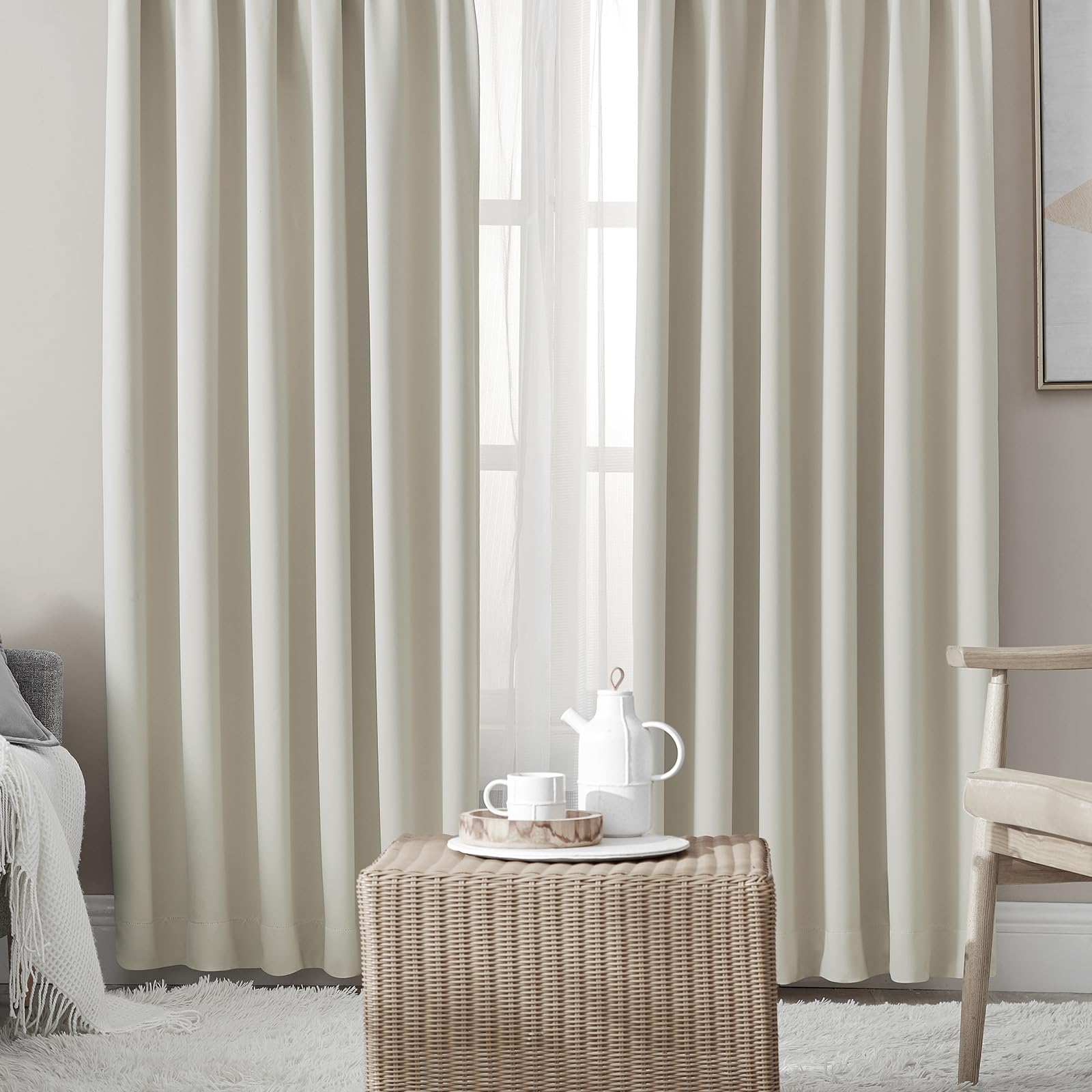 Hansleep カーテン 4枚セット 遮光カーテン 1級遮光 ベージュ 幅100cm丈178cm 断熱 防寒 防音 省エネ 無地 洗える 寝室 リビング用 (ドレープカーテン2枚・レースカーテン2枚)