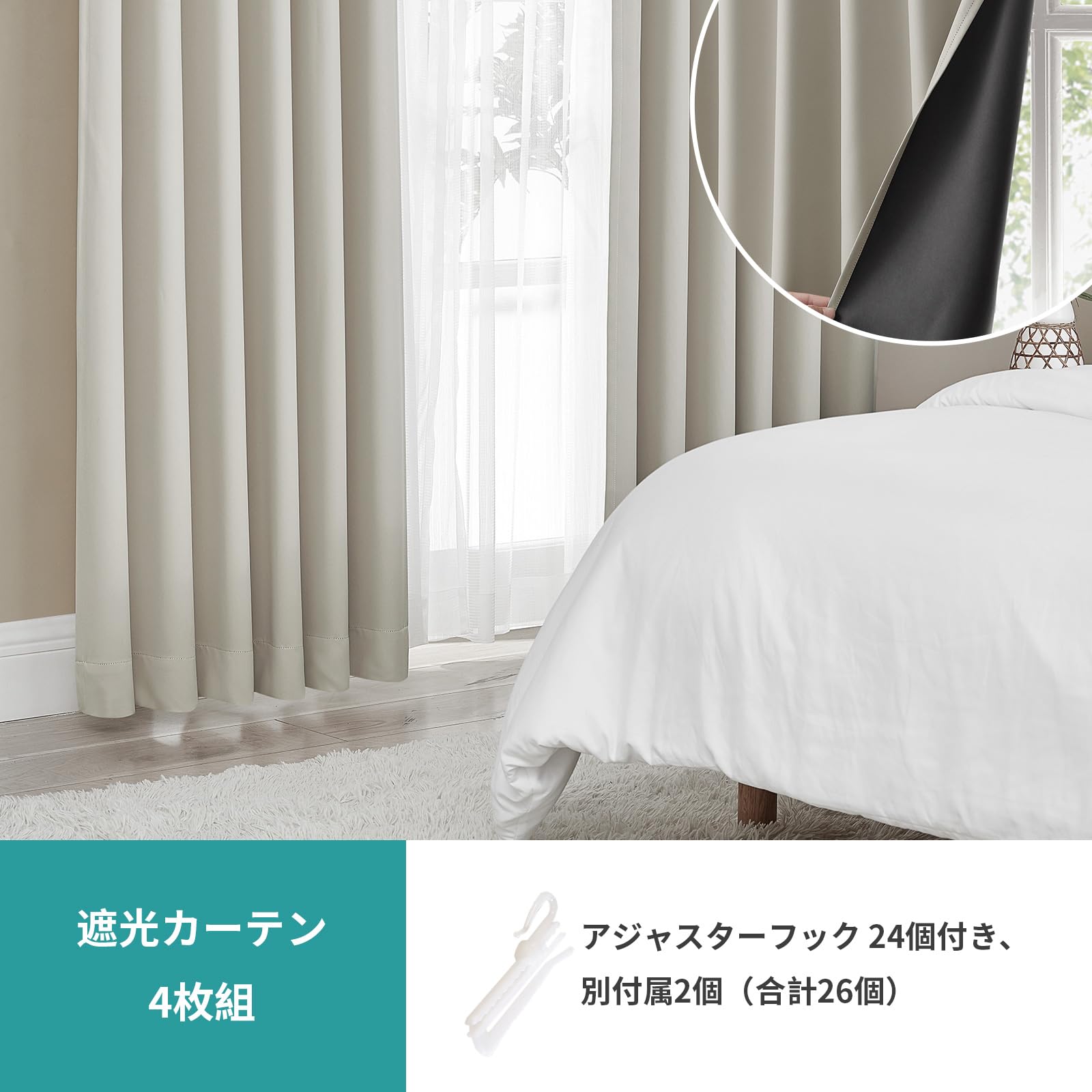 【数量限】Hansleep カーテン 4枚セット 遮光カーテン 1級遮光 ベージュ 幅100cm丈178cm 断熱 防寒 防音 省エネ 無地 洗える 寝室 リビング用 (ドレープカーテン2枚・レースカーテン2枚) | GIGATERA