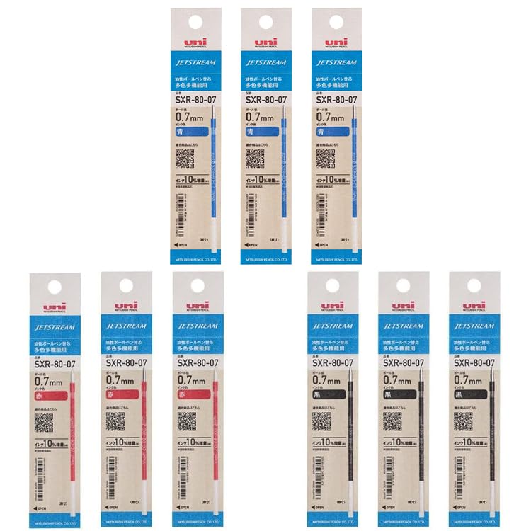 【セール】【各3個セット】 三菱鉛筆 ボールペン 替芯 黒 赤 青 3色入 ジェットストリーム 多色多機能 SXR-80-07 0.7mm SXR8007K + オリジナルロゴ入りシールつき | GIGATERA