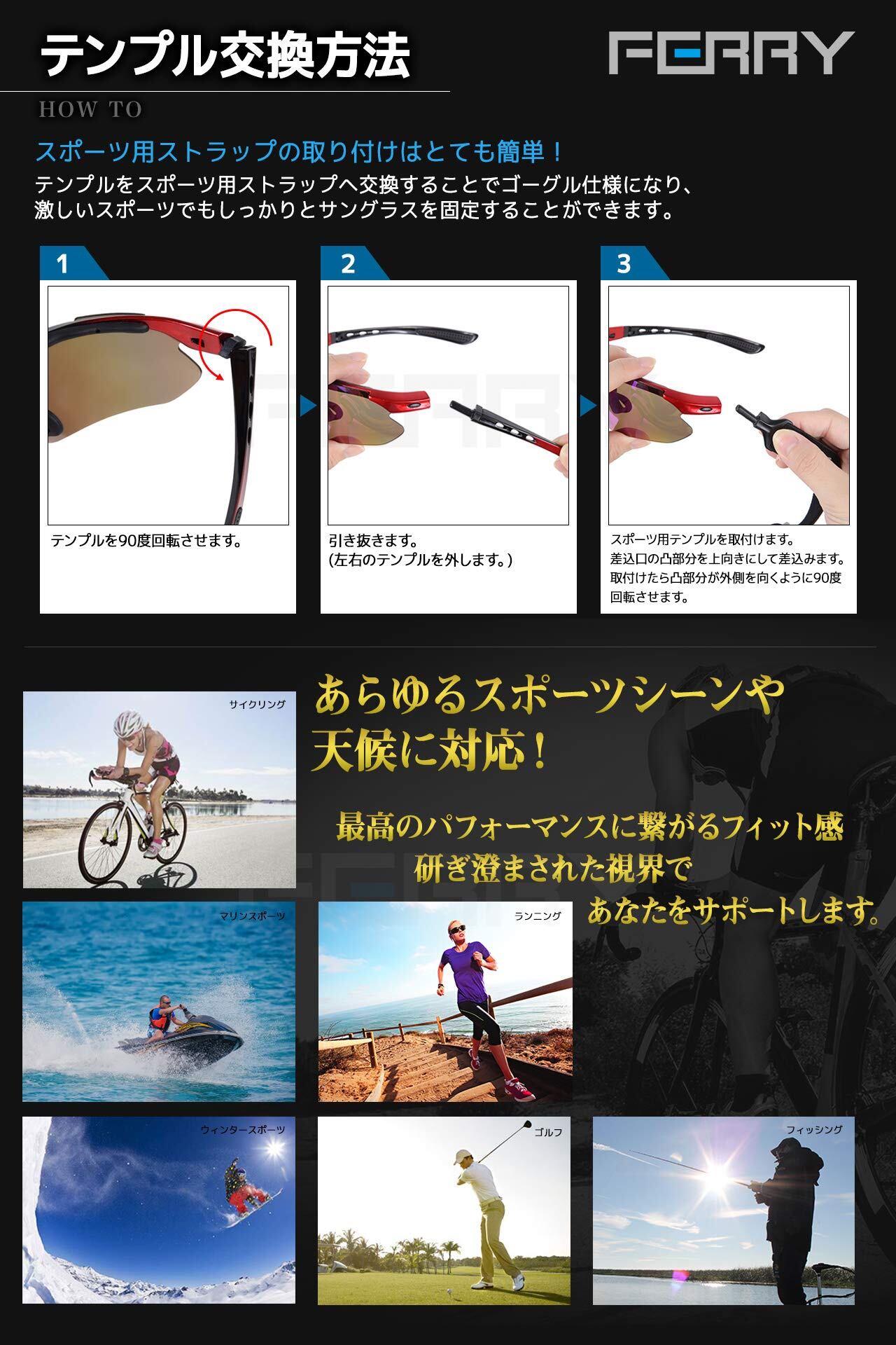 (フェリー) FERRY スポーツサングラス ミラーレンズ フルセット専用交換レンズ5枚 ユニセックス 7カラー