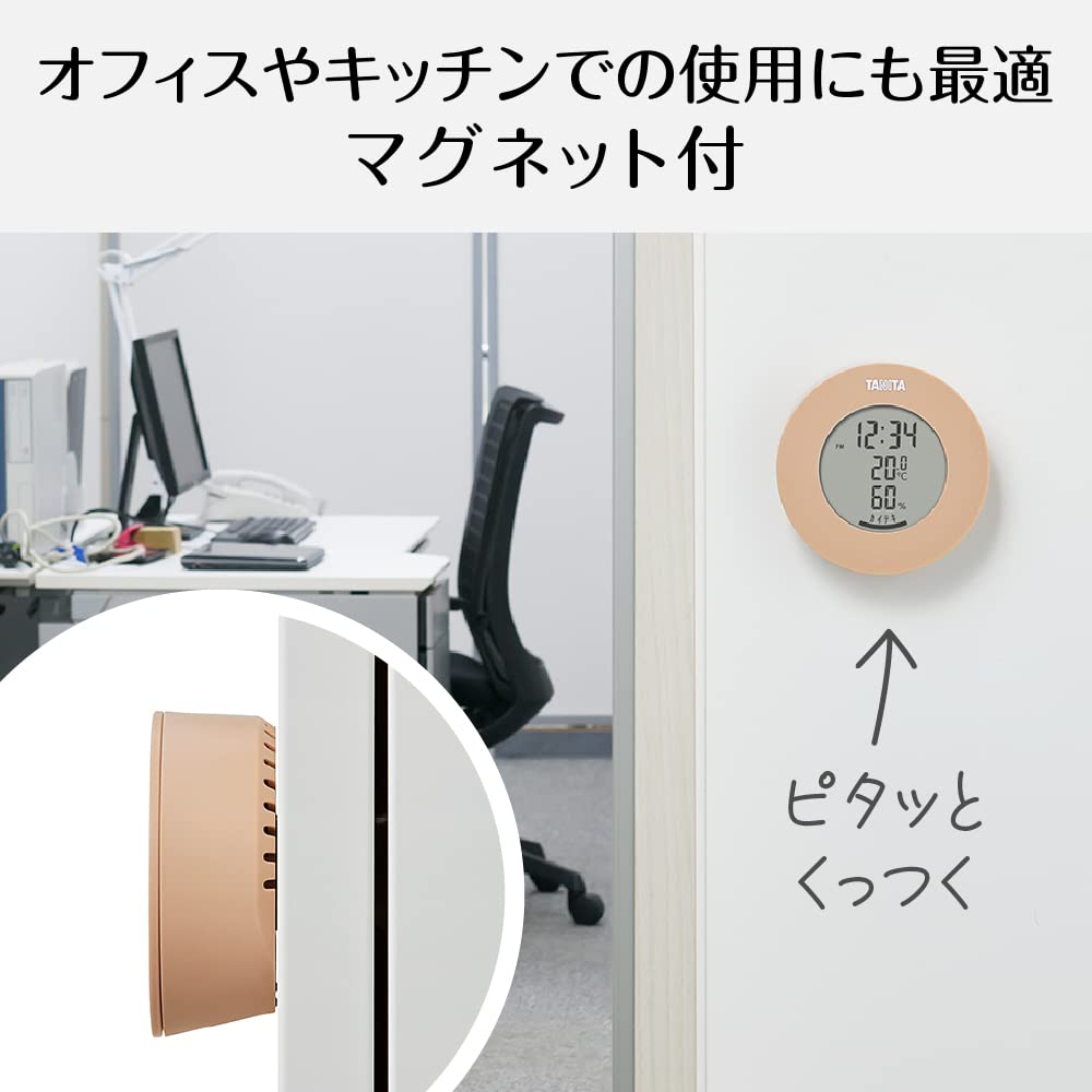 タニタ 温湿度計 時計 温度 湿度 デジタル 卓上 マグネット ライトブラウン TT-585 BR