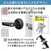 鍵が付いているため、お子さんや来客などに入ってほしくない部屋に施錠することができたり、出入り口のセキュリティを強化できたり、家のプライバシーを守ることのできる安全で使いやすいドアロックです。
