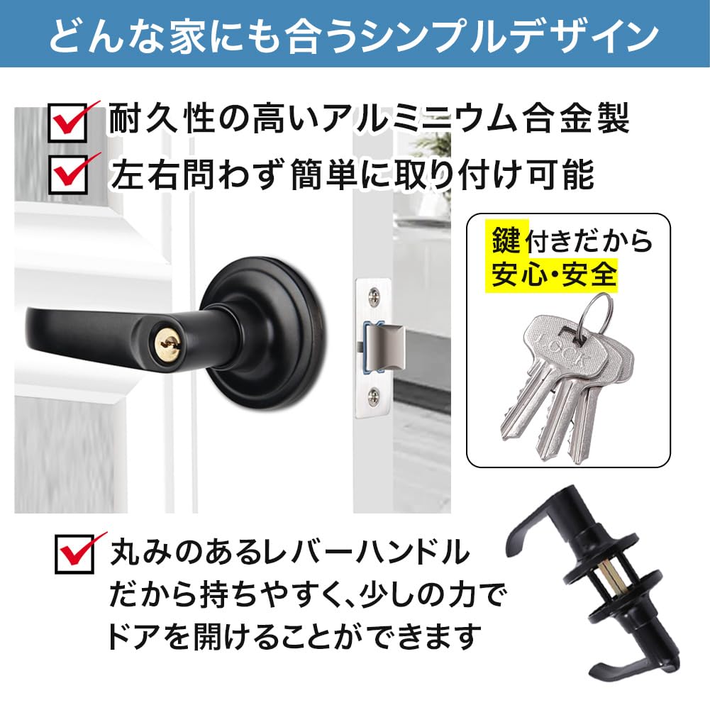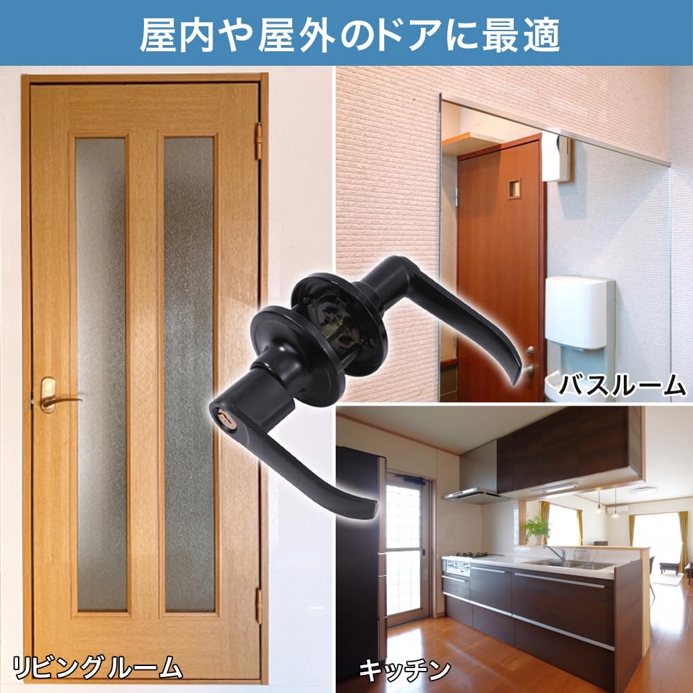 (アウプル) ドアノブ 鍵付き レバーハンドル ドアレバー 浴室 トイレ用 玄関 住宅室内用レバーハンドル 室内 交換 鍵付き ドアレバー (ブラック)