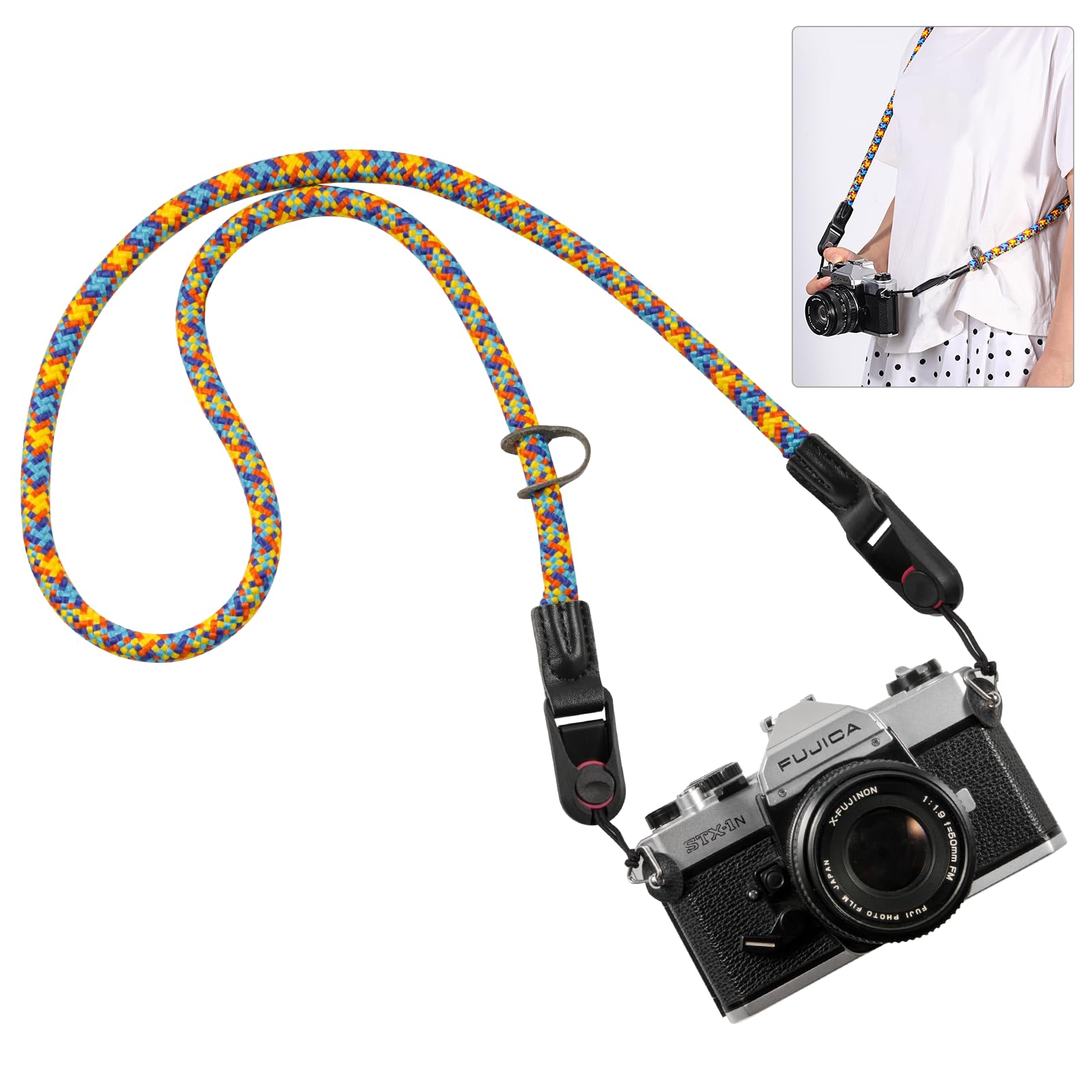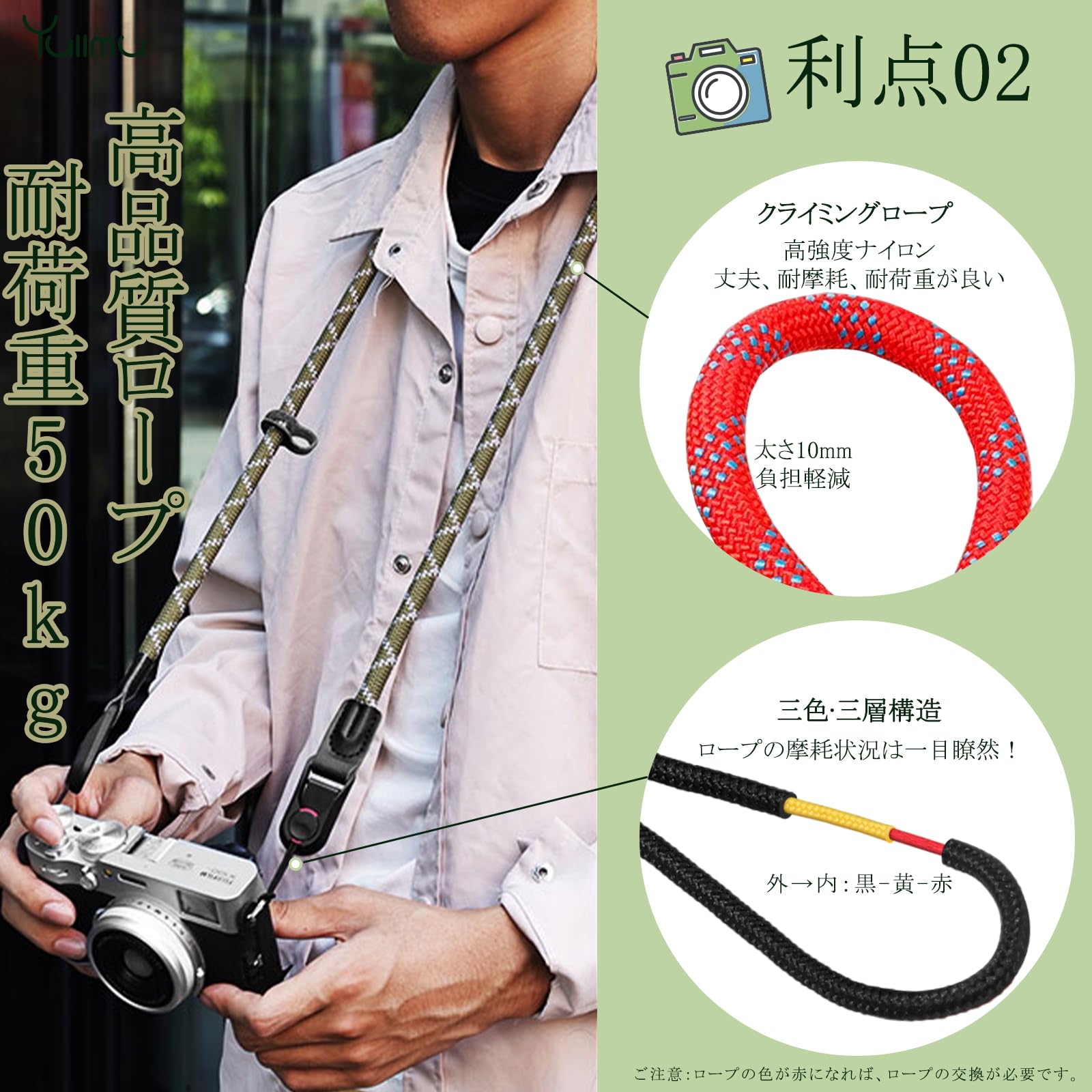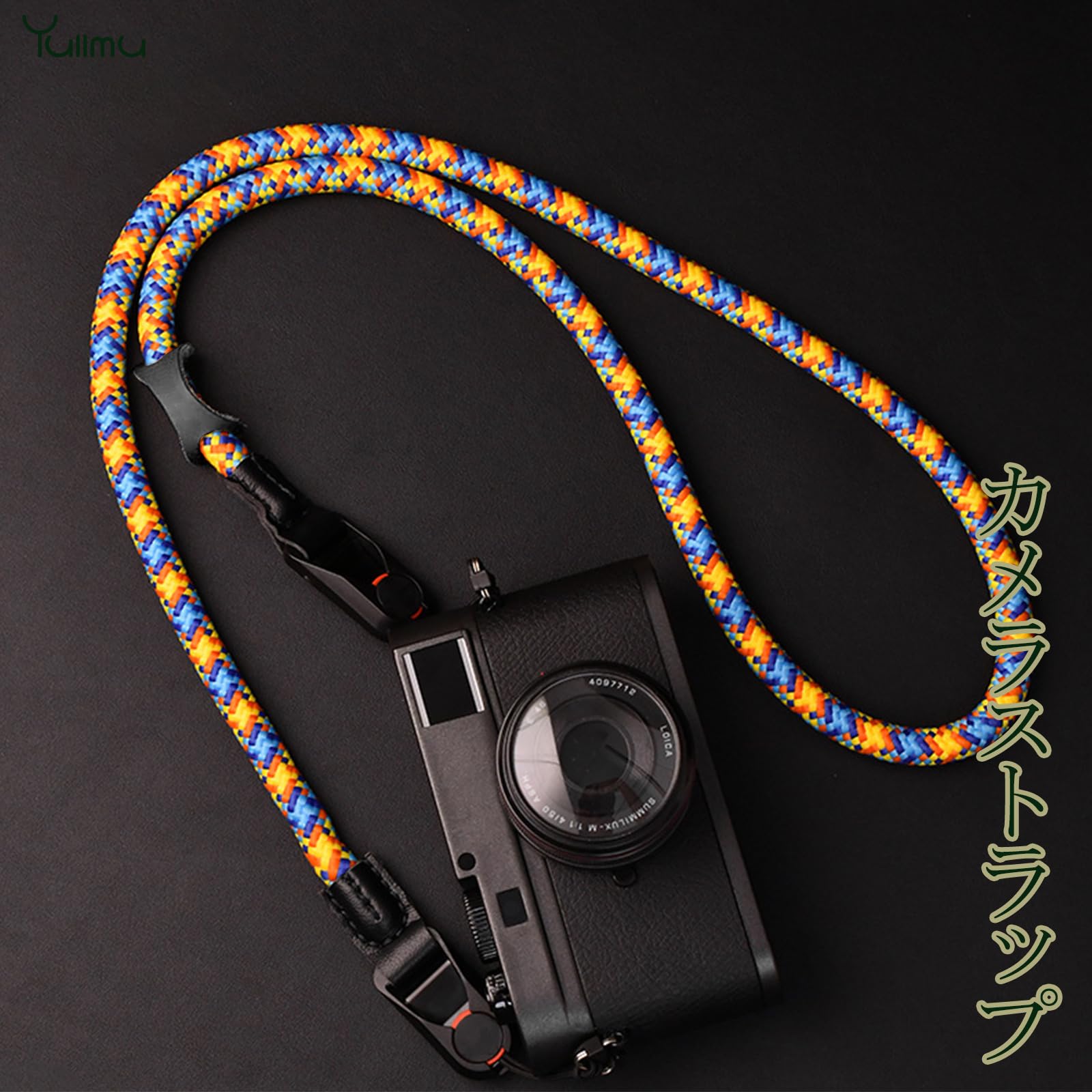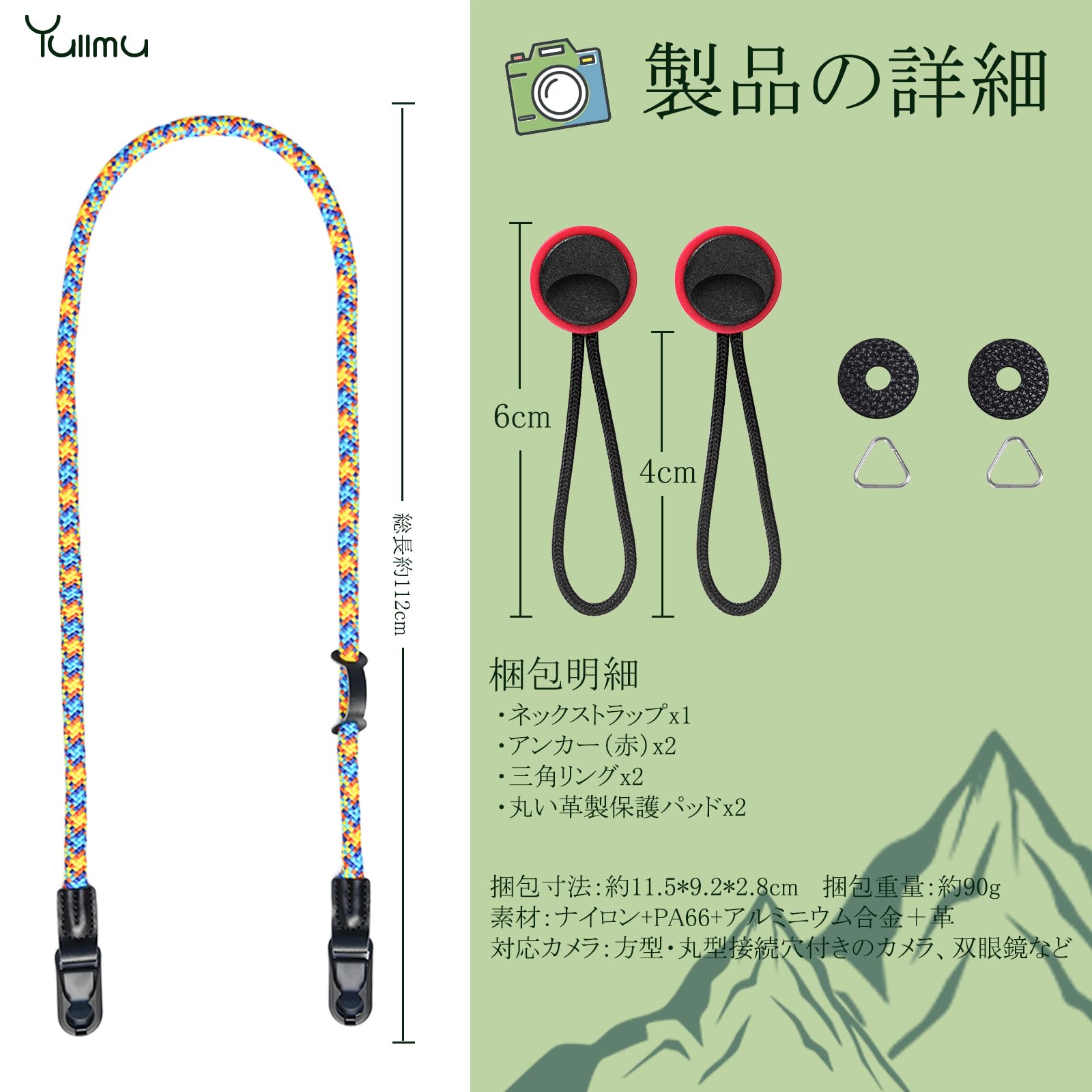 [Yullmu] カメラストラップ カメラネックストラップ アンカー設計 三角リング付き 3層構造 一眼レフカメラ クライミングロープ 花火色