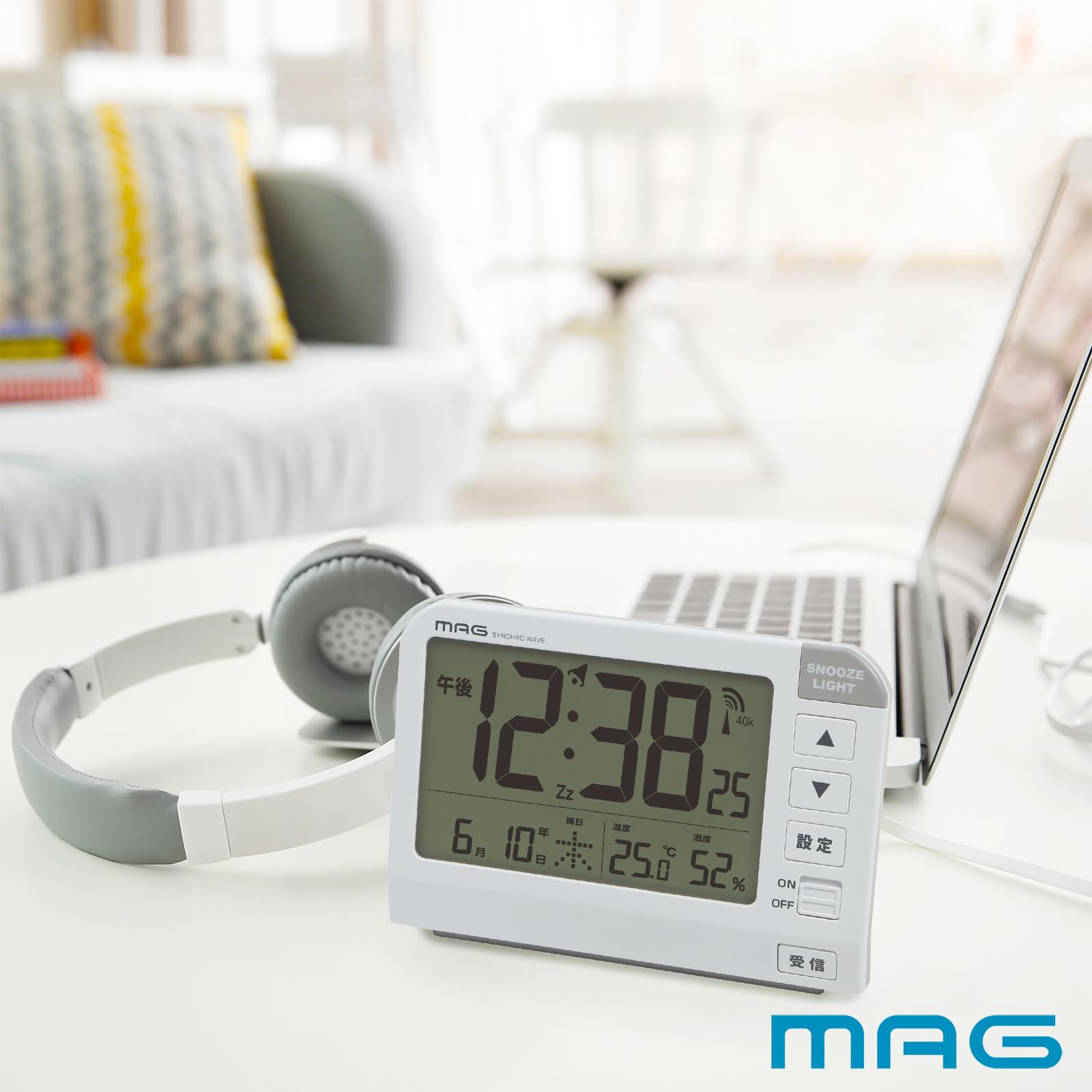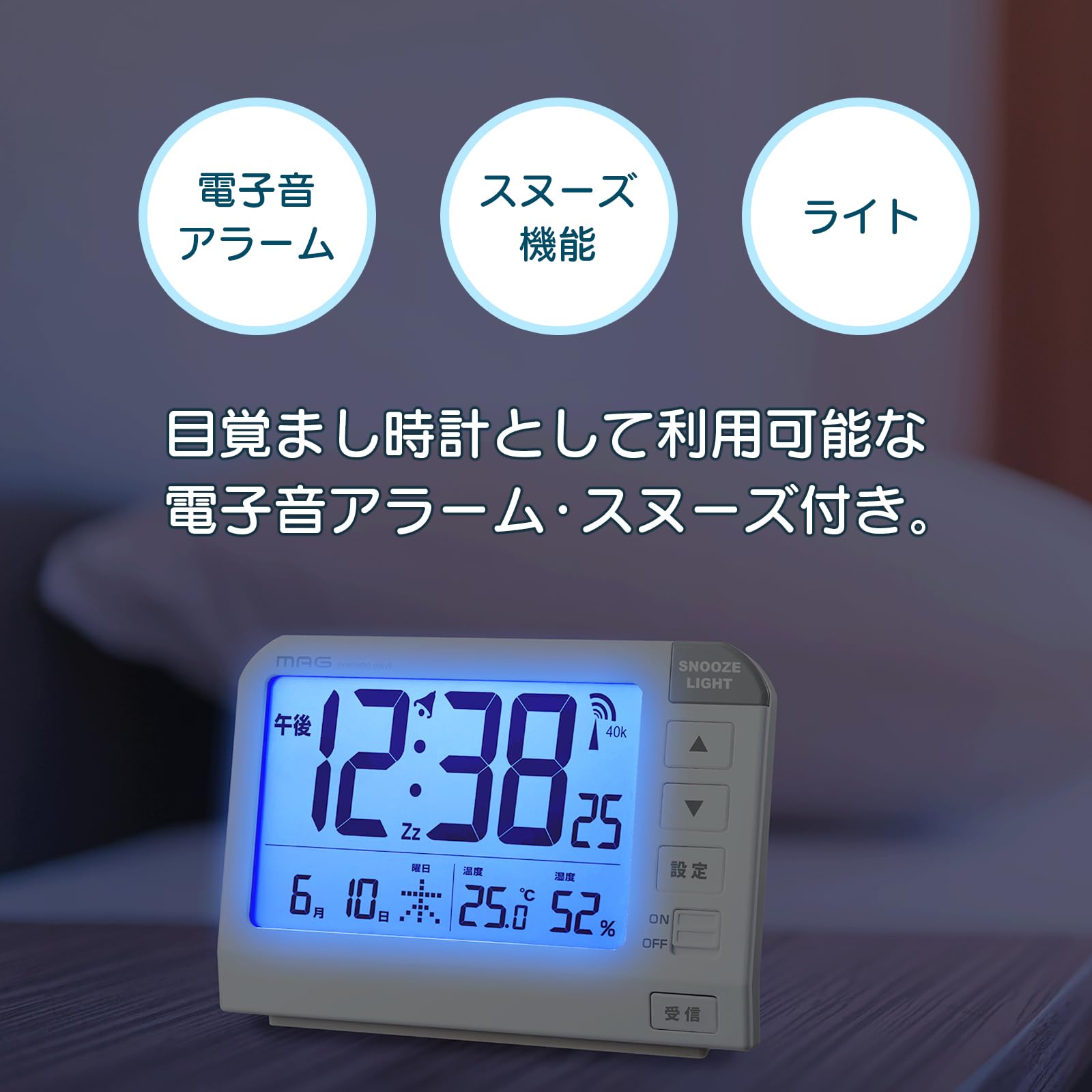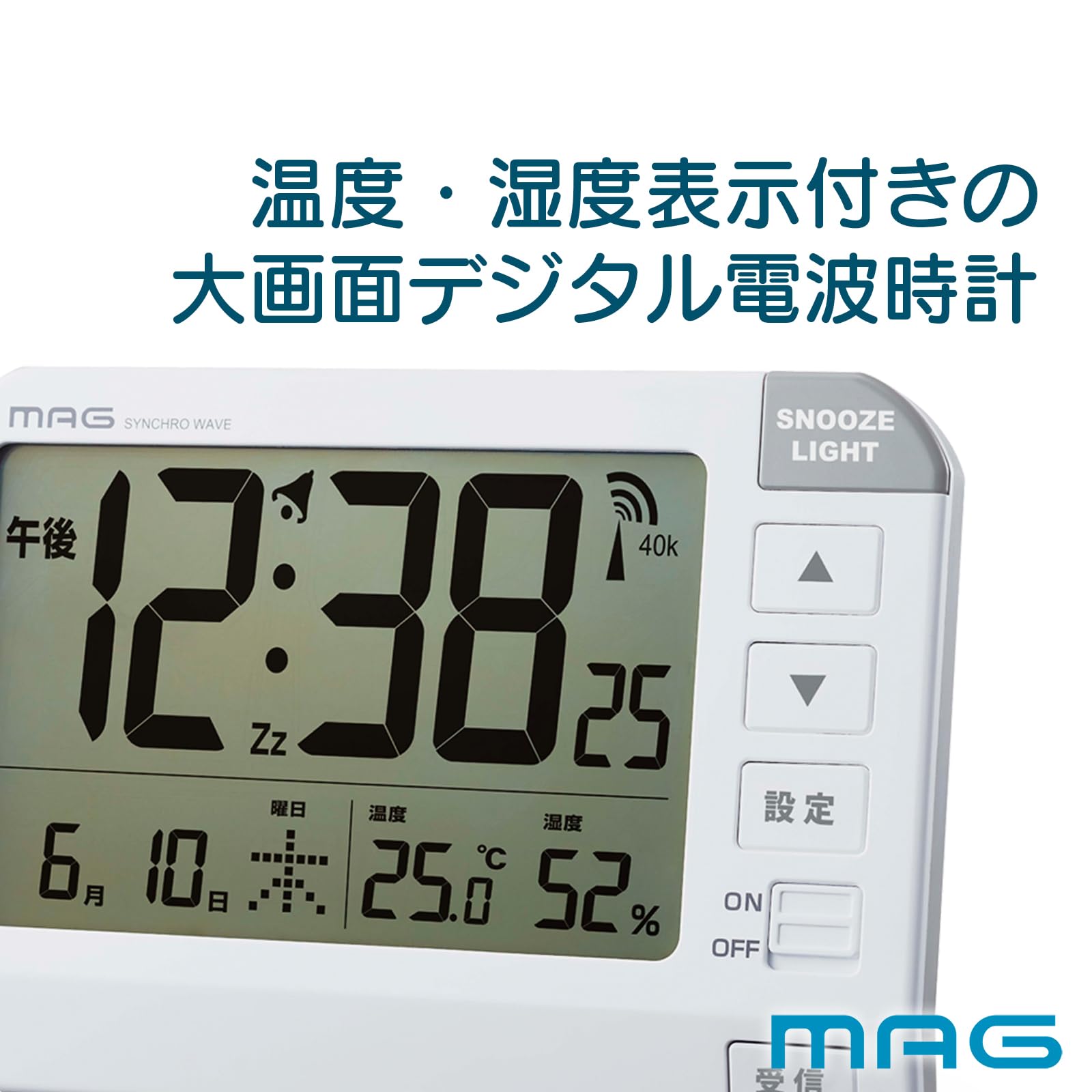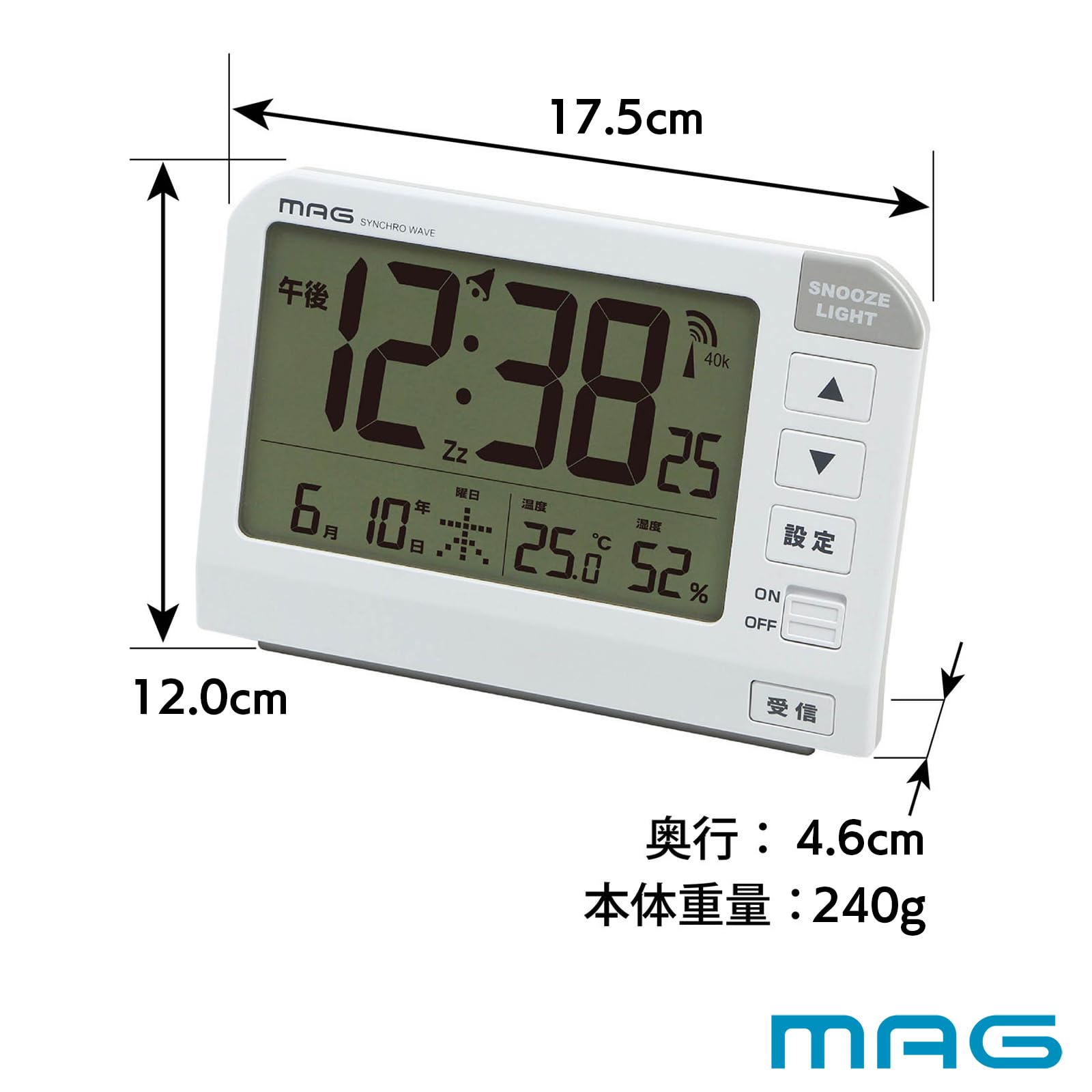 MAG(マグ) 目覚まし時計 置き時計 デジタル 電波時計 温度計 湿度計 温湿度計 カレンダー 電子音 アラーム スヌーズ ライト ホワイト ホーネット T-767 WH-Z ノア精密