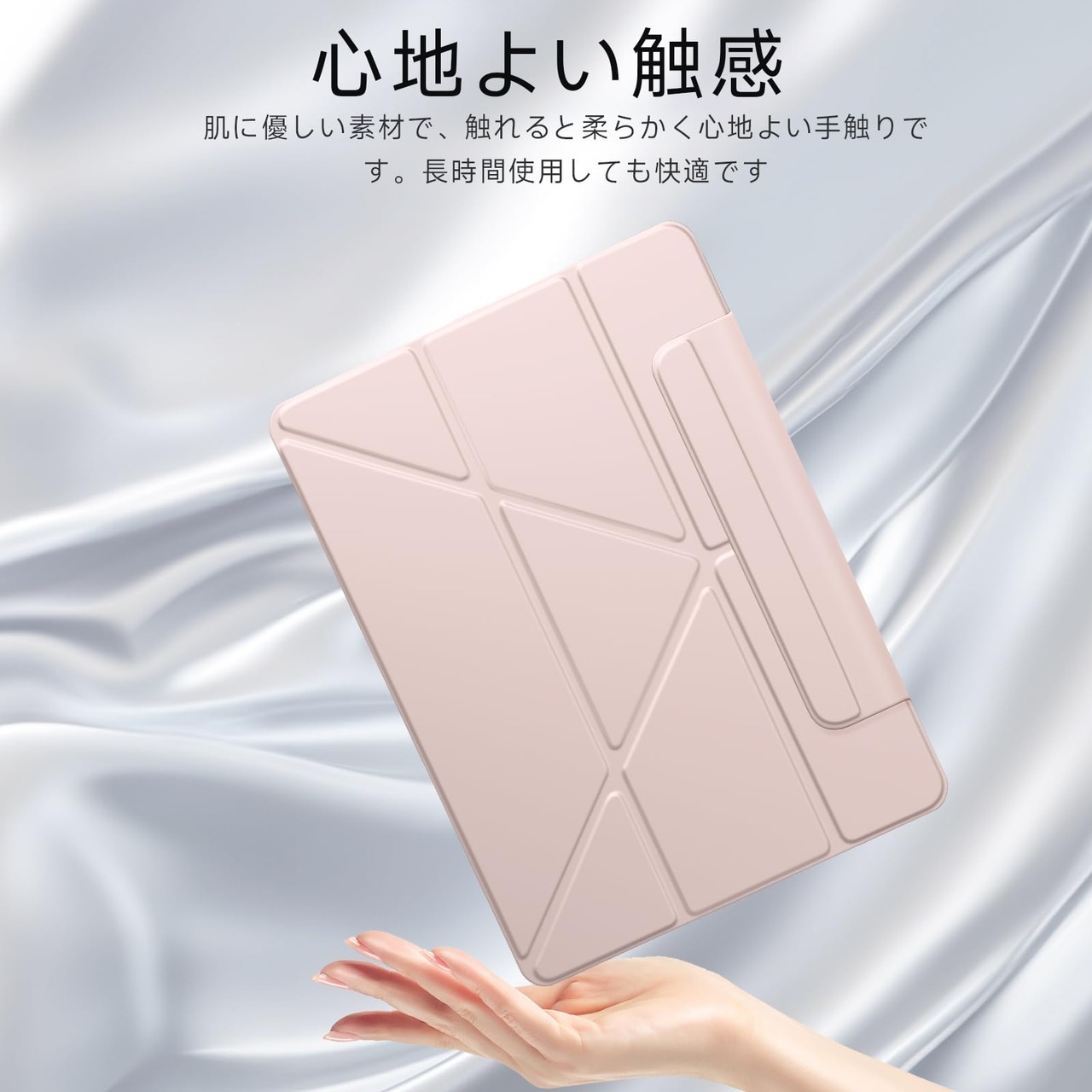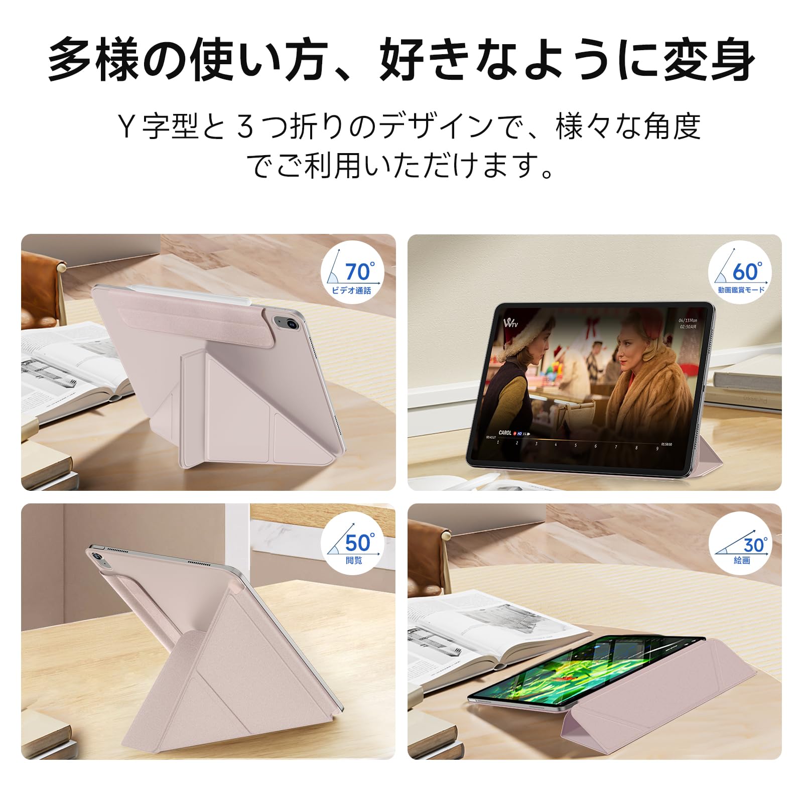 iPad 11世代 ケース (A16、2025) iPad 第10/11世代 (2022/2025)対応 強力マグネット吸着 横置&縦置 角度調整可能 三角形スタンド 安定感 超スリム 極薄 軽量 耐久性保護カバー オートスリープ/ウェイク対応(ピンク)