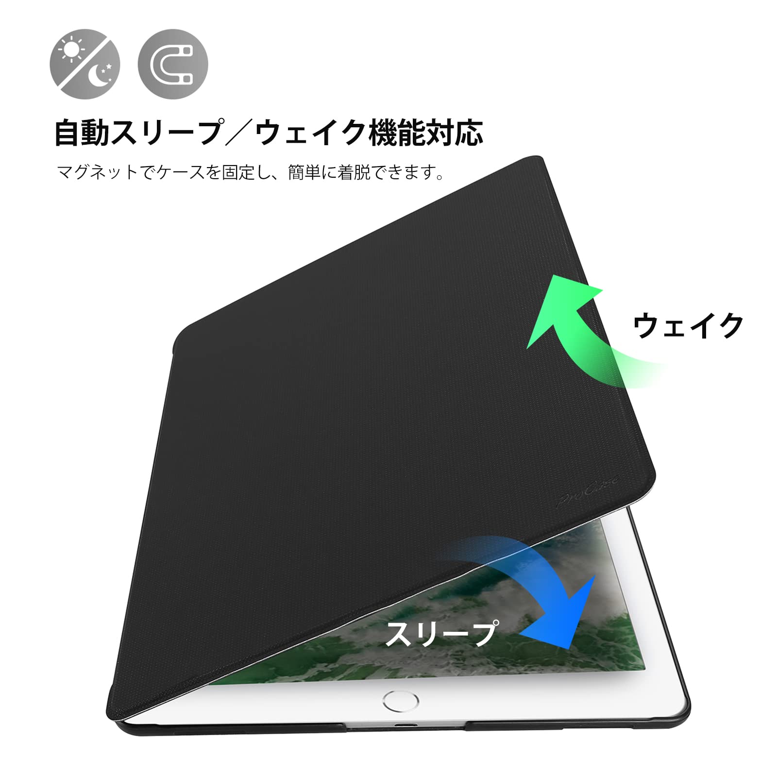 ProCase iPad Pro 12.9 ケース 2世代・1世代(2017 2015) 耐衝撃 縦と横にスタンド 保護カバー (ブラック)